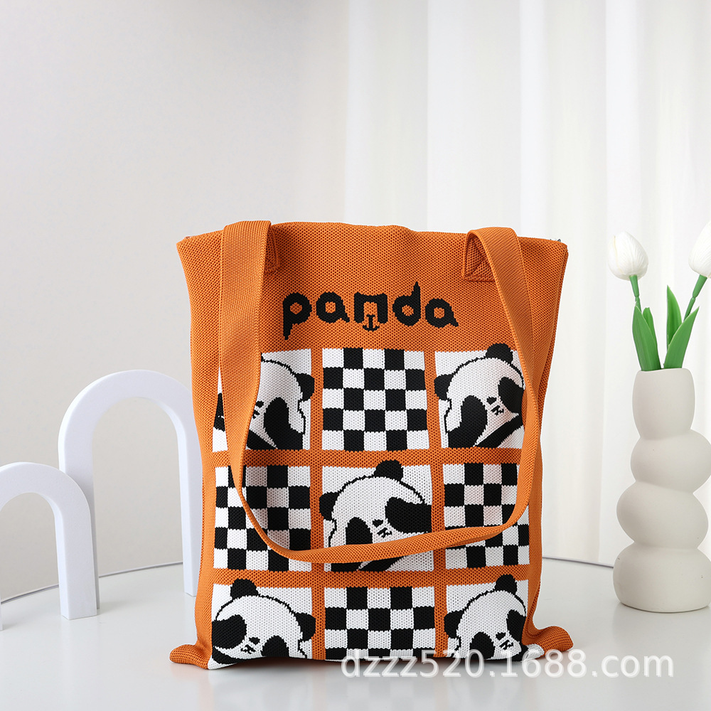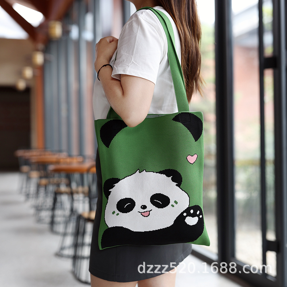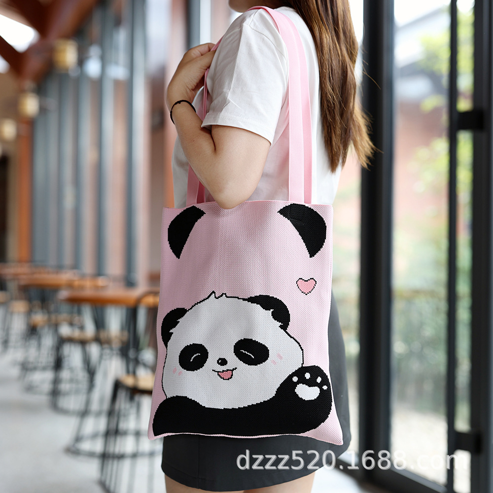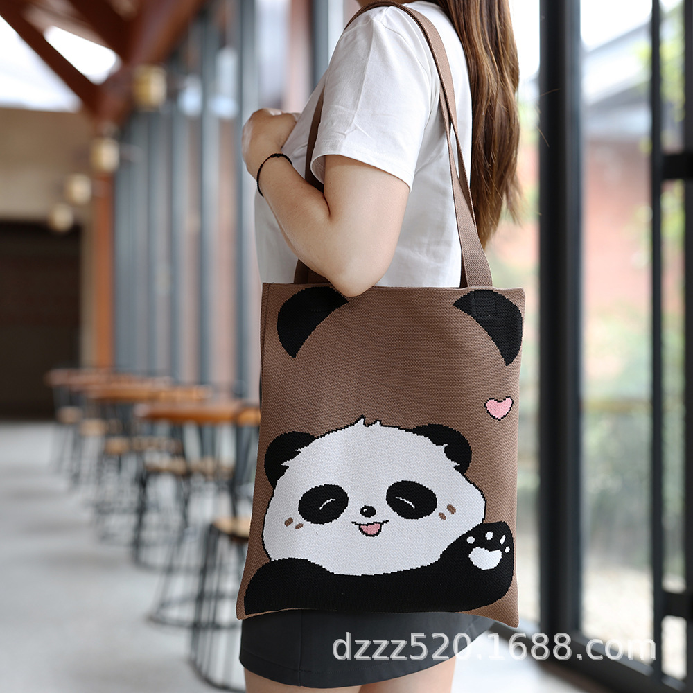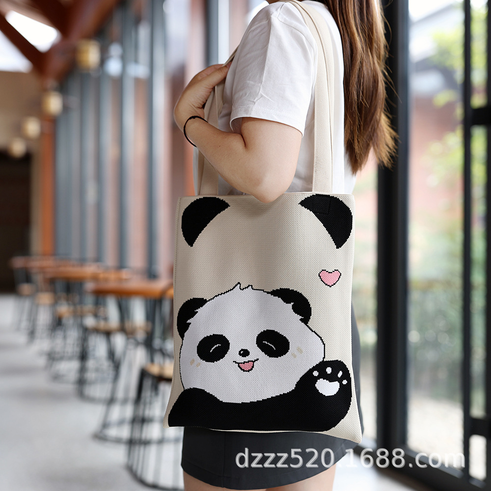 Chengdu Panda Grandpa와 동일한 스타일의 귀여운 폴리에스터 휴대용 니트 겨드랑이 가방, 숄더백, 핸드백의 공장 직매스토어 가기