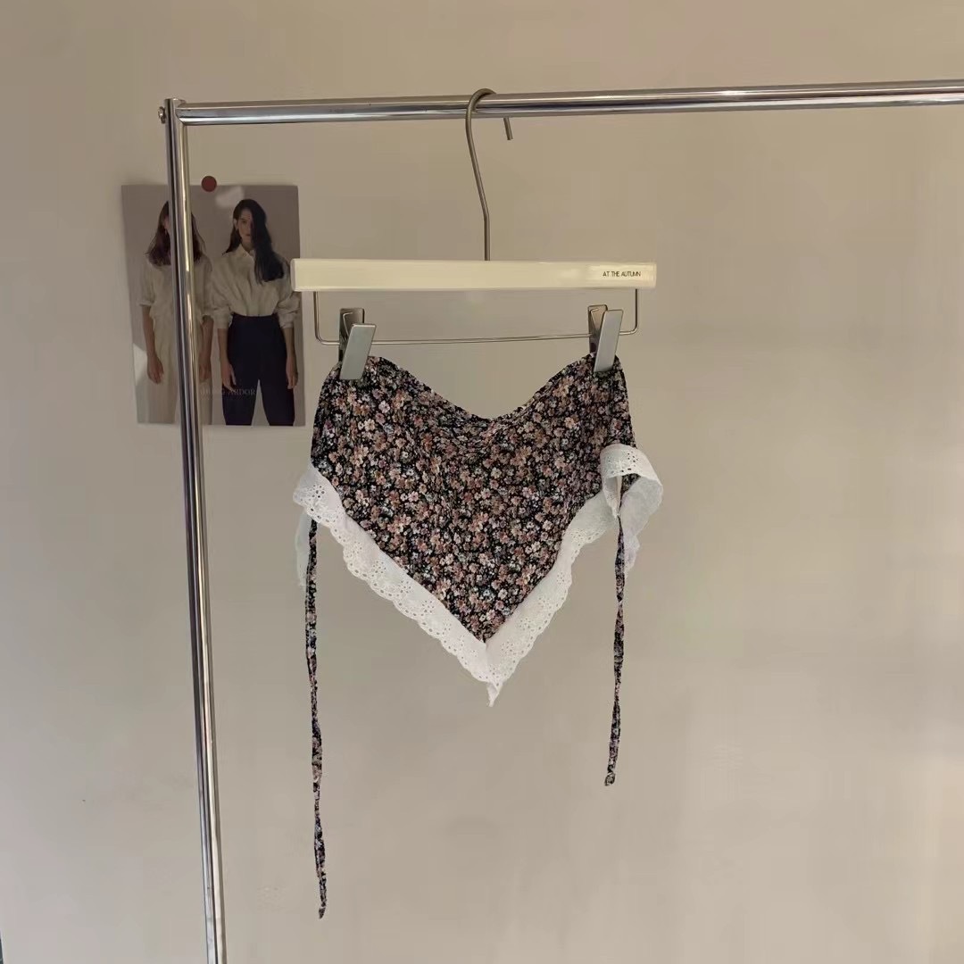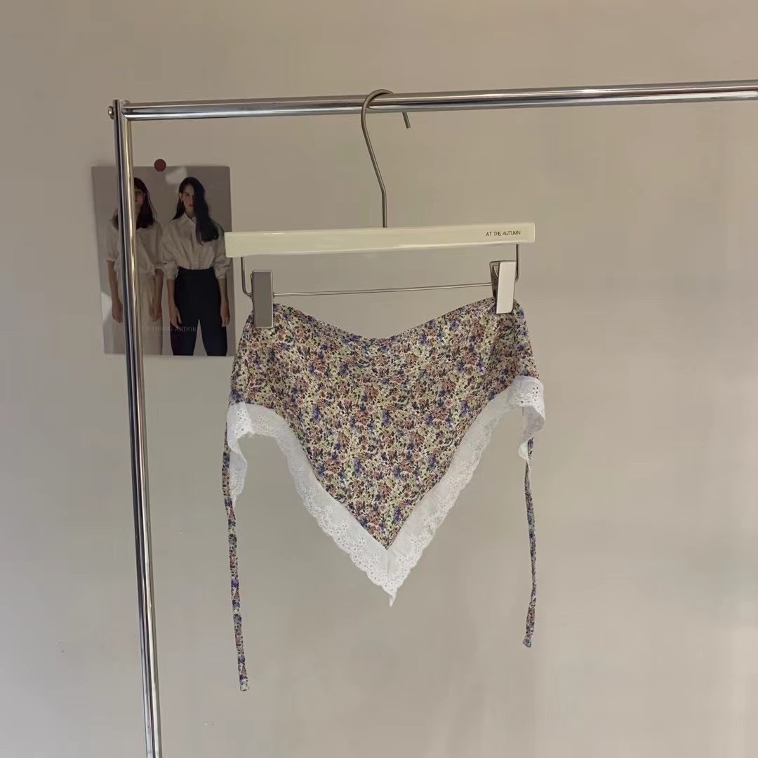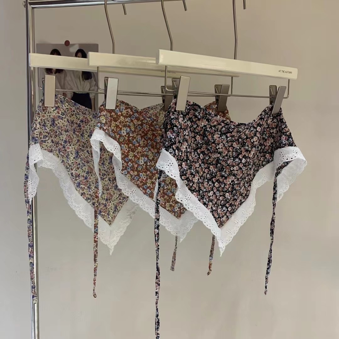 달콤하고 귀여운 터번 플로랄 레이스 헤어 벨트 여성 하이 엔드 센스 사이버 연예인 실크 스카프 우아한 삼각형 스카프 헤어 액세서리 트렌디 한 헤어 액세서리