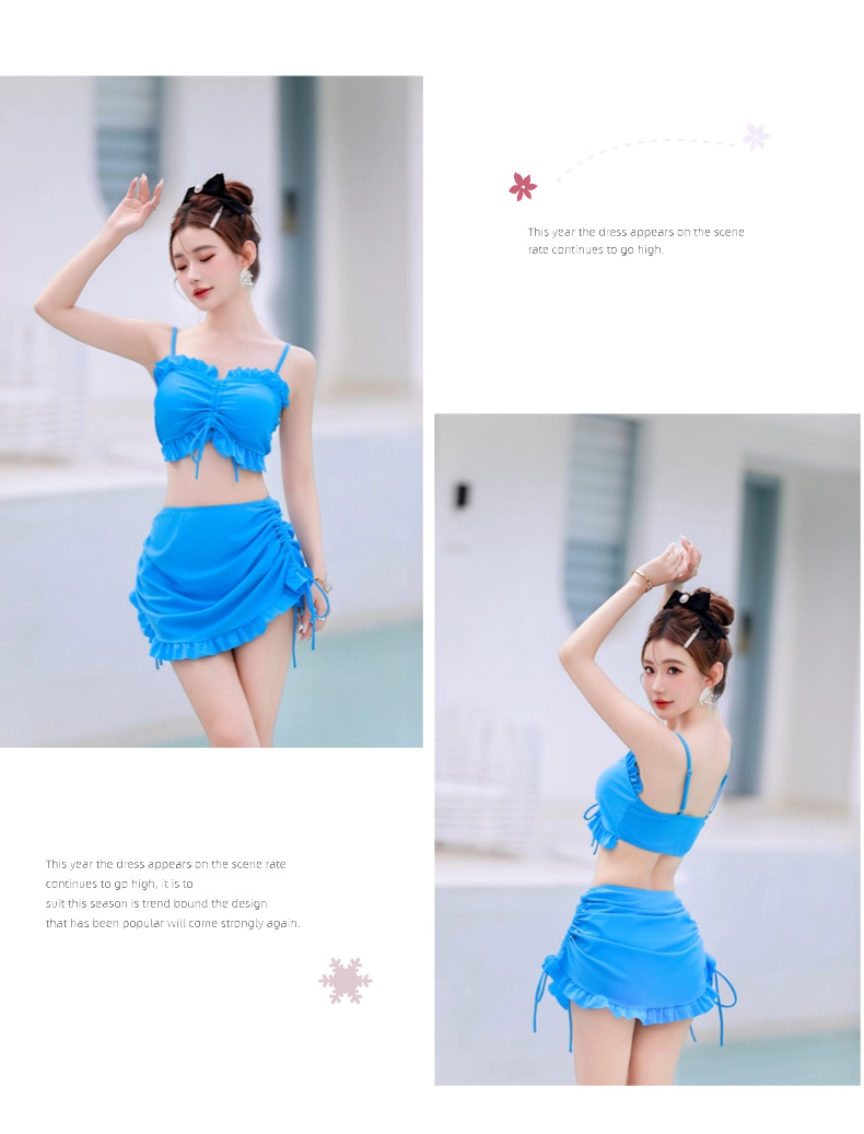 【핑뉴걸】2025 신상 비키니 3피스 수영복 여성용 슬림핏 휴가 온천 수영복스토어 가기