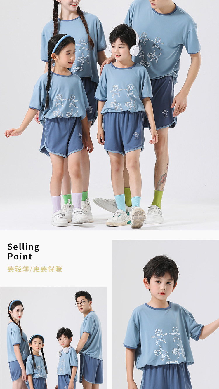 부모-어린이 스포츠 반소매 세트 여름 소년 소녀를위한 얇은 큰 어린이 반바지 에어컨 세트 잠자기 용 어린이 홈 옷