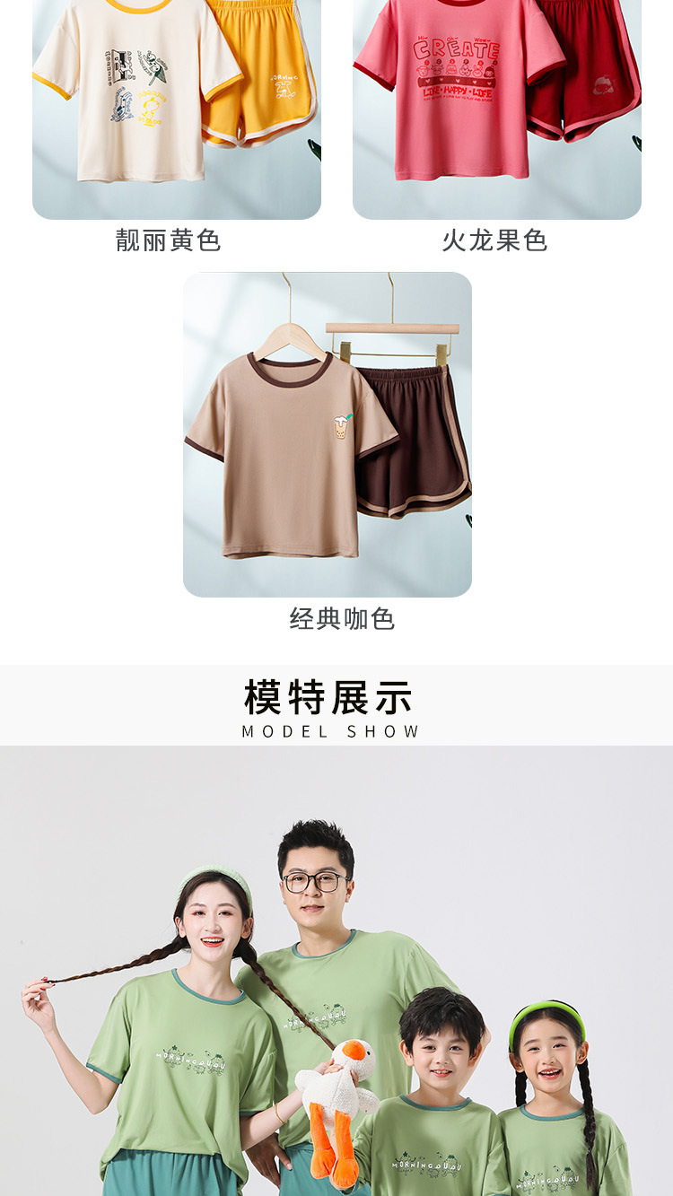 부모-어린이 스포츠 반소매 세트 여름 소년 소녀를위한 얇은 큰 어린이 반바지 에어컨 세트 잠자기 용 어린이 홈 옷스토어 가기