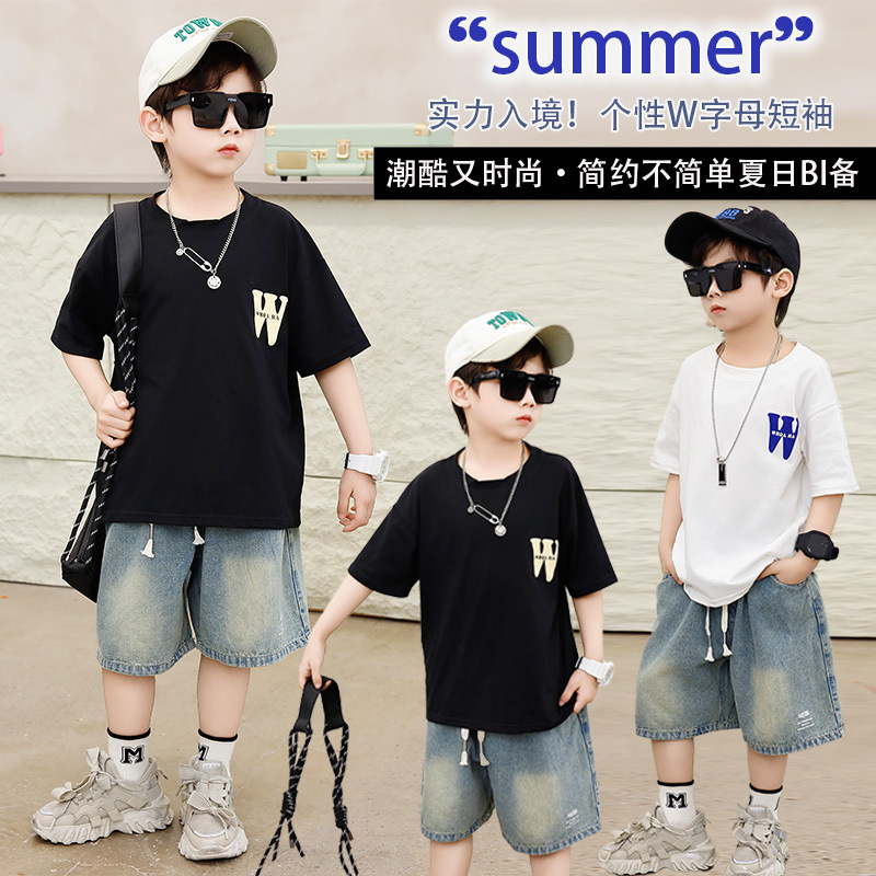 여름 신작 어린이 순면 유형 A 반팔 티셔츠 소년 소녀 반팔 한국식 오프 숄더 다용도 아동 의류 도매 대외 무역스토어 가기