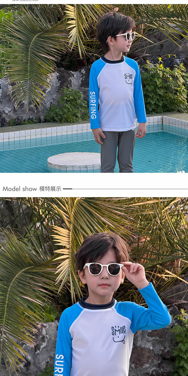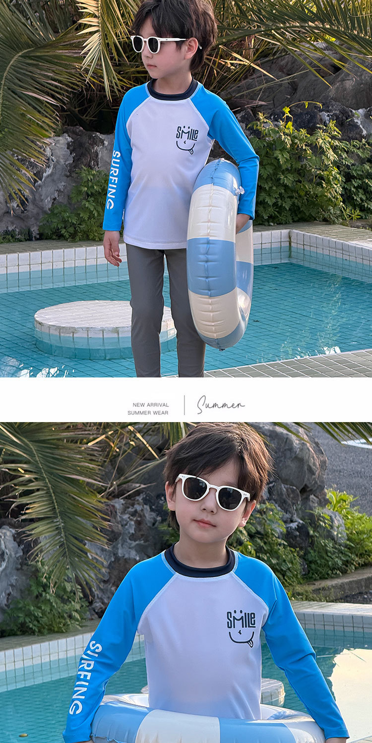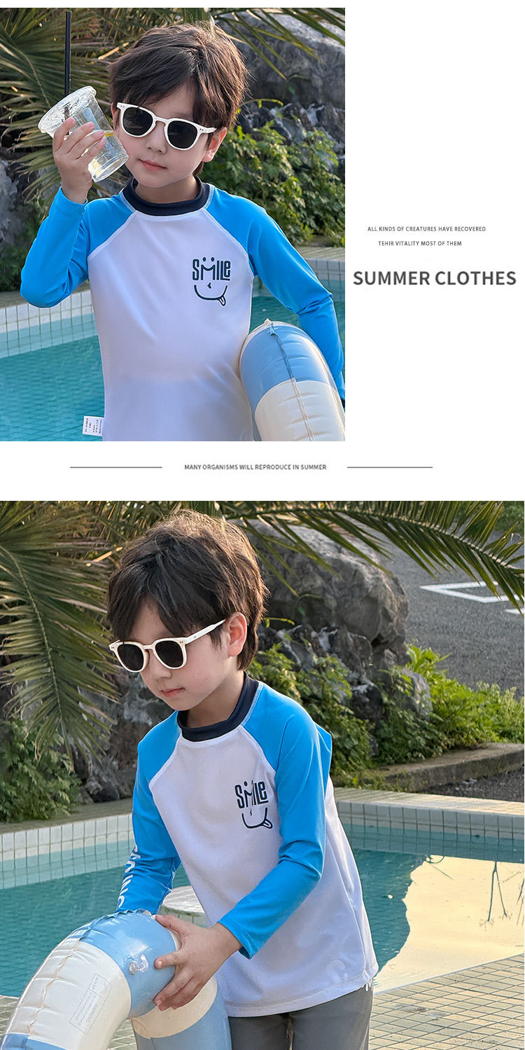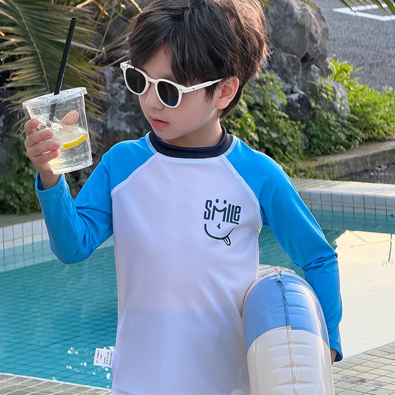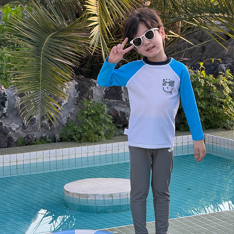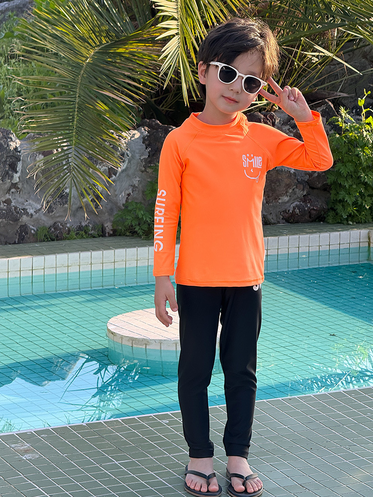 2024 년 여름 새 어린이 스플릿 긴팔 수영복 비치 온천 세트 학생들 중 · 대형 어린이 긴 태양 보호