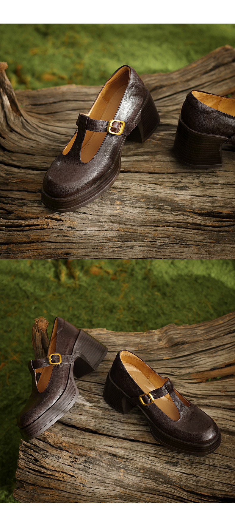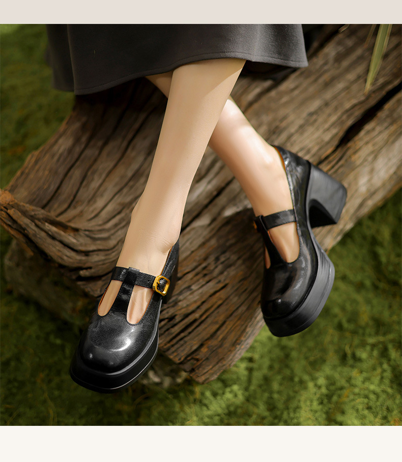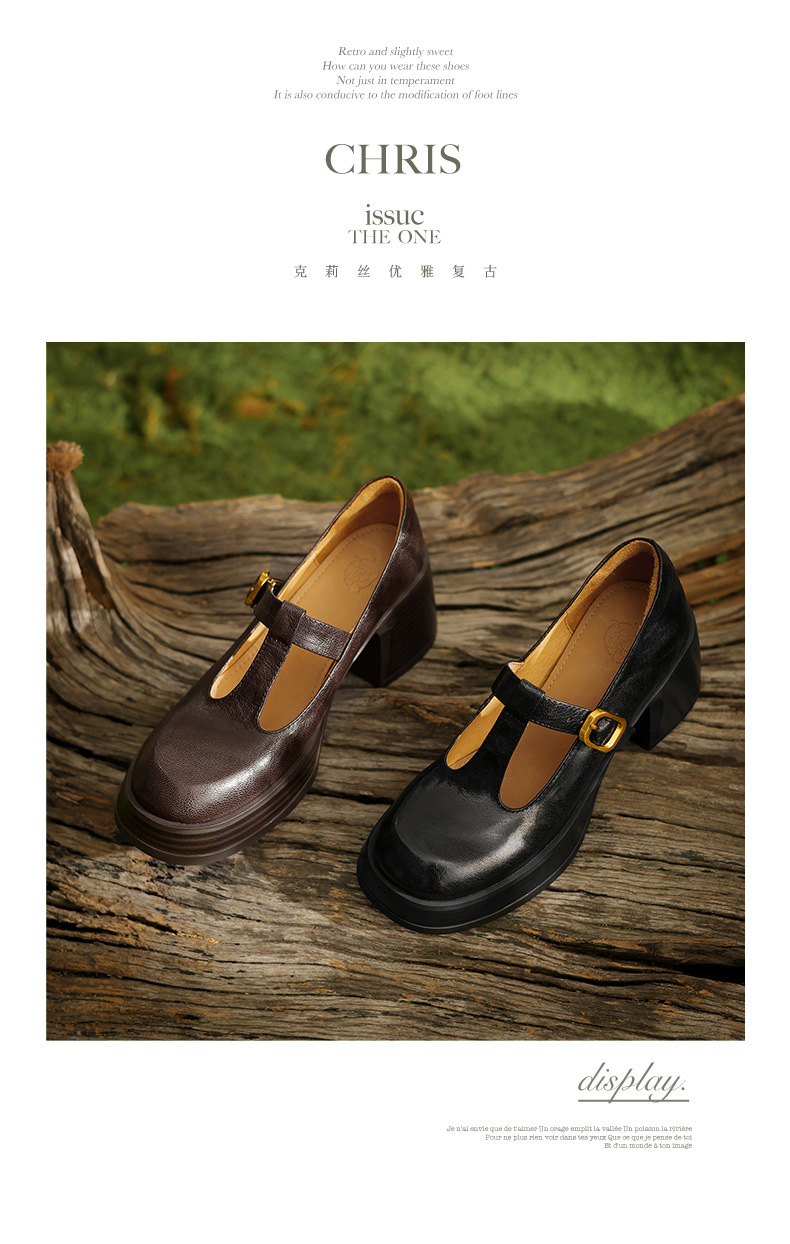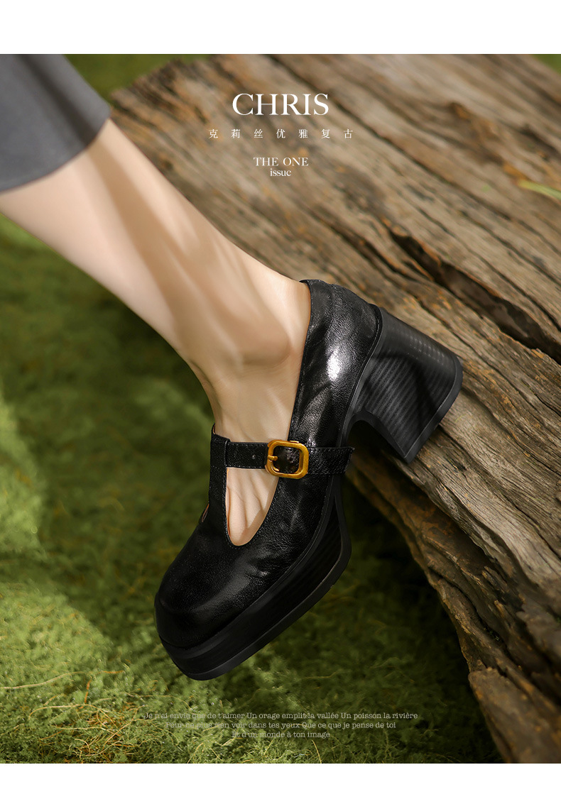 2025년 봄 신상 여성용 빈티지 스타일 통굽 하이힐 패션 슈즈, 방수 플랫폼 얕은 굽 신발스토어 가기