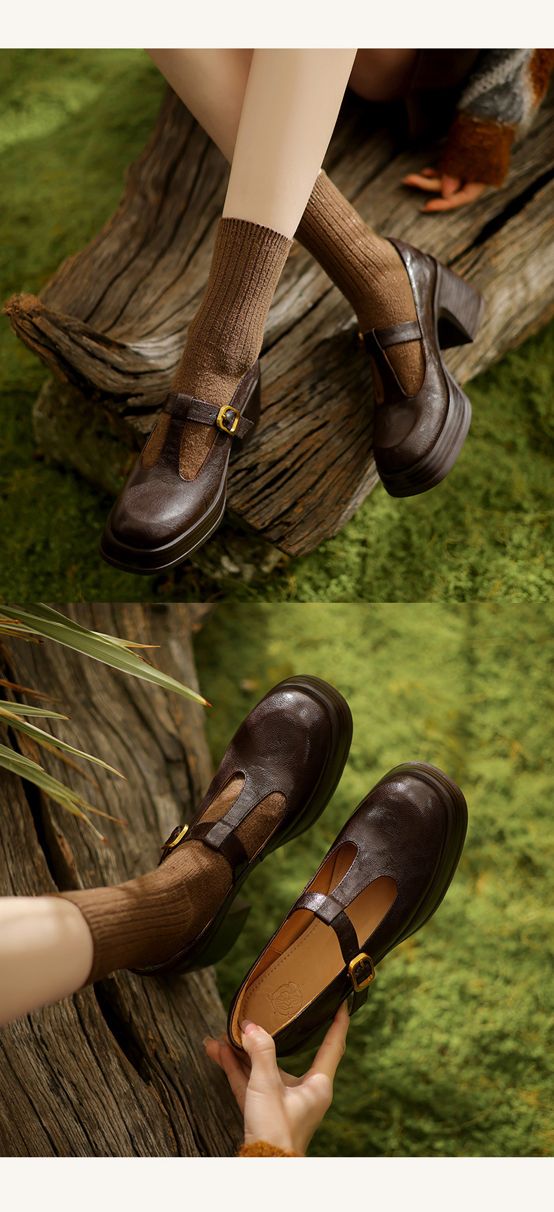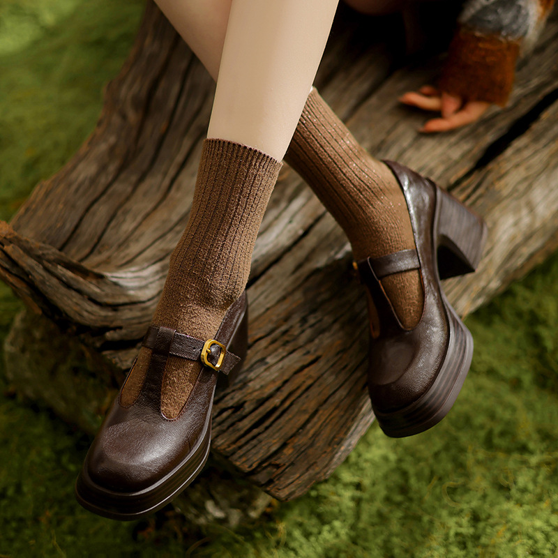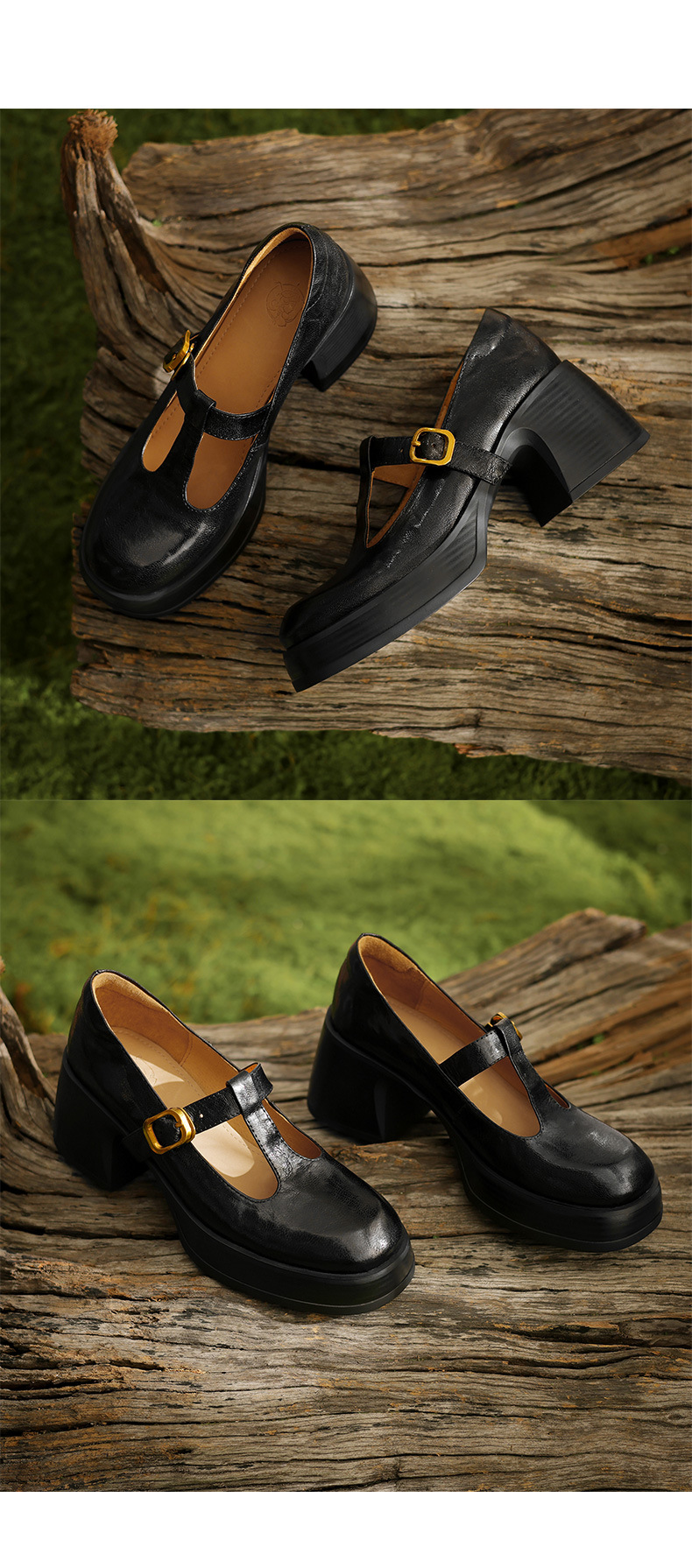 2025년 봄 신상 여성용 빈티지 스타일 통굽 하이힐 패션 슈즈, 방수 플랫폼 얕은 굽 신발스토어 가기