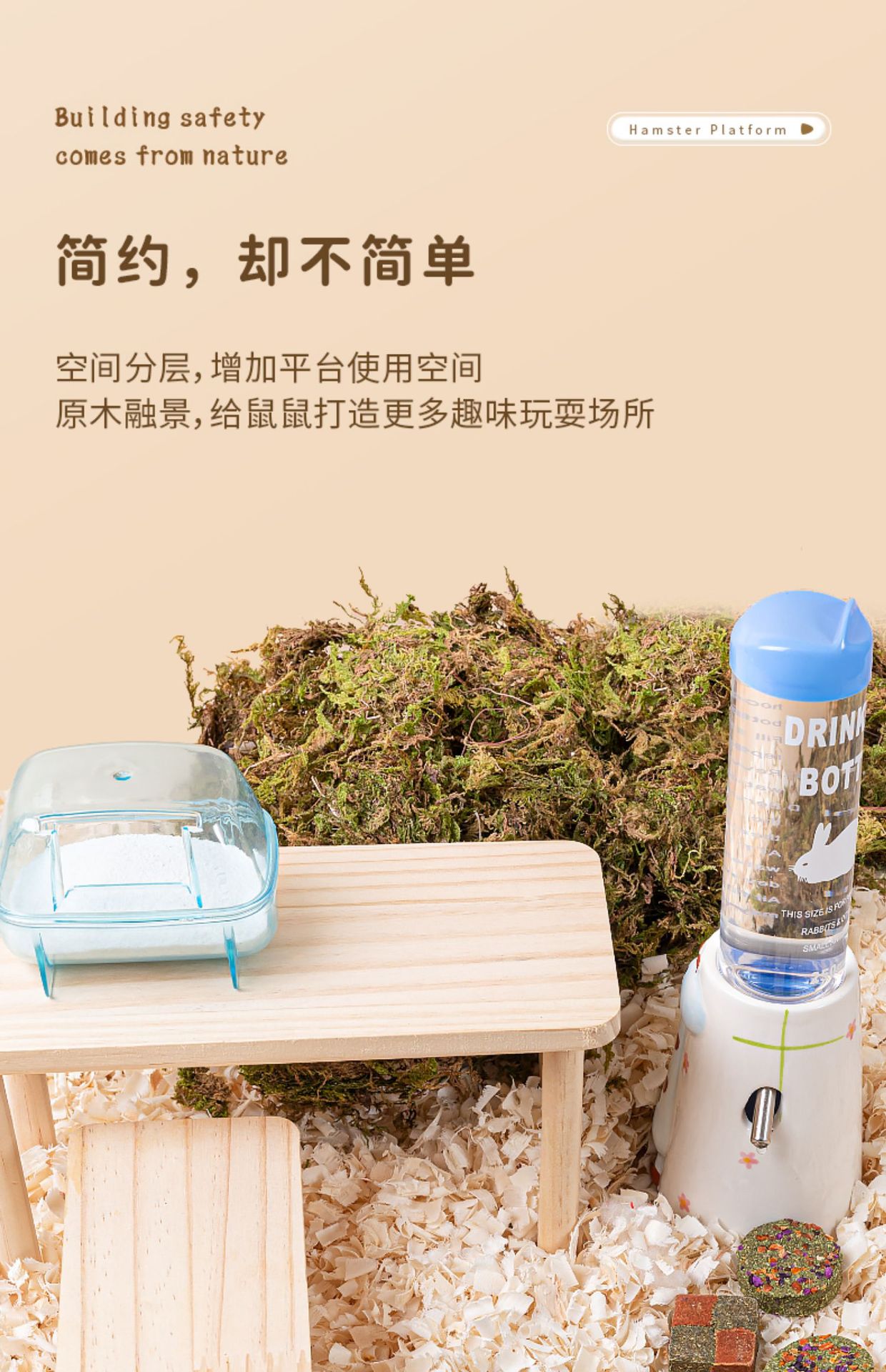 햄스터 케이지 조경 단단한 나무 플랫폼 2 층 다기능 로프트 햄스터 케이지 황금 곰 루틴 치킨 로그 장난감스토어 가기