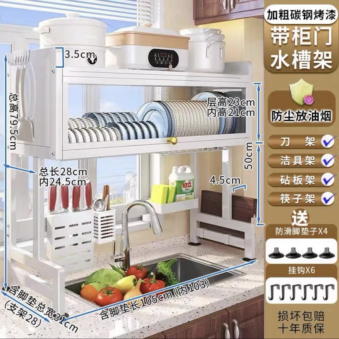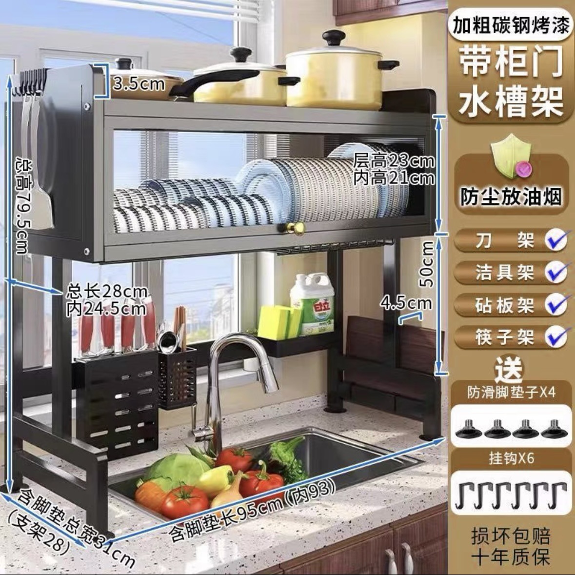 주방 싱크대 수납 선반 식기 세척 싱크대 방진 그릇 조리대 수납 식기 다기능 수납 배수구