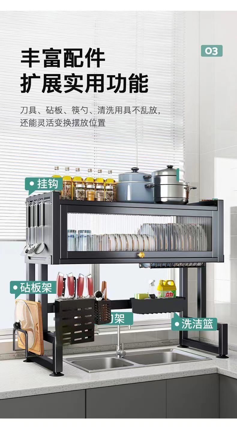 주방 싱크대 수납 선반 식기 세척 싱크대 방진 그릇 조리대 수납 식기 다기능 수납 배수구스토어 가기