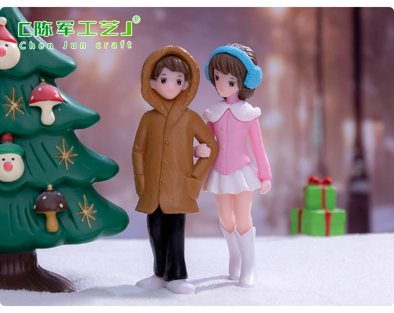 마이크로 풍경 창조적 인 손 손 커플 낭만적 인 눈 크리스마스 트리 조경 DIY 장식 액세서리 데스크탑 작은 장식품