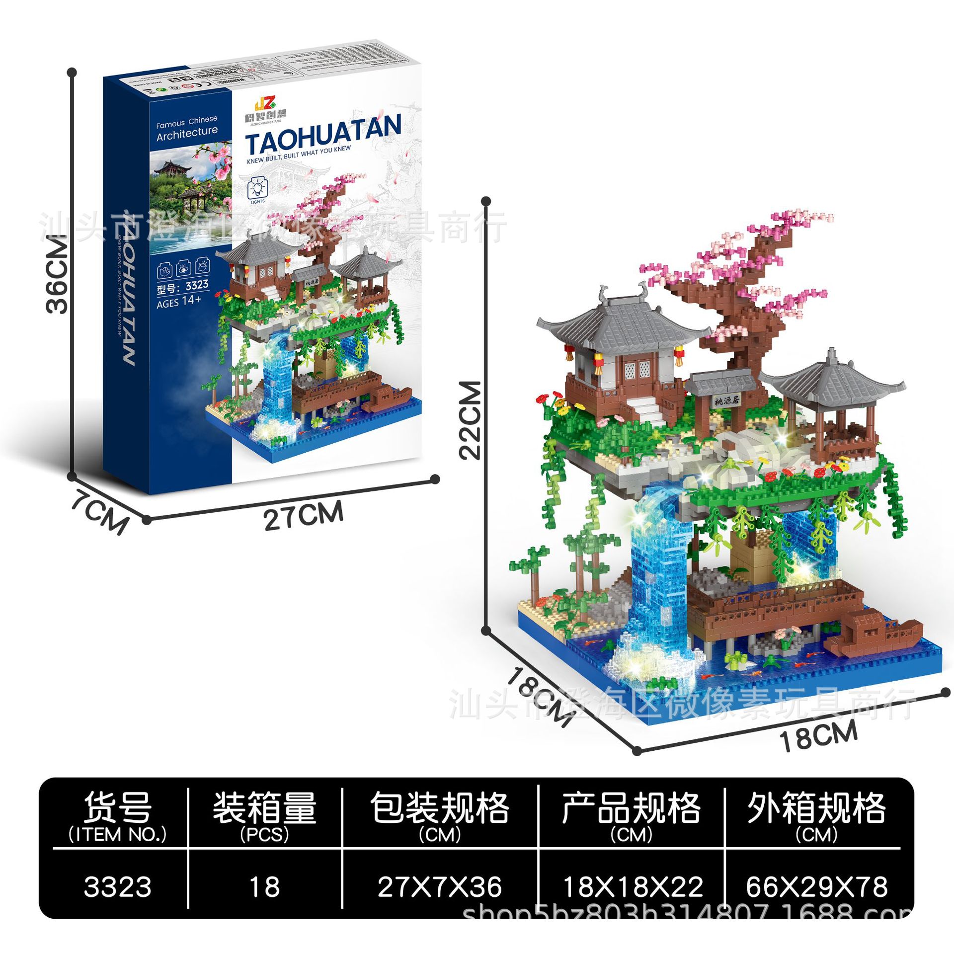 골동품 창조적 인 건물 모델 복숭아 꽃 풀 빌딩 블록 마이크로 입자 퍼즐 조립 장난감 장식품 선물 국경 다이 파