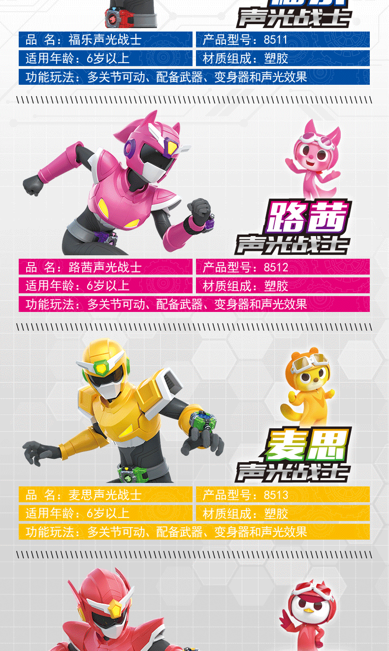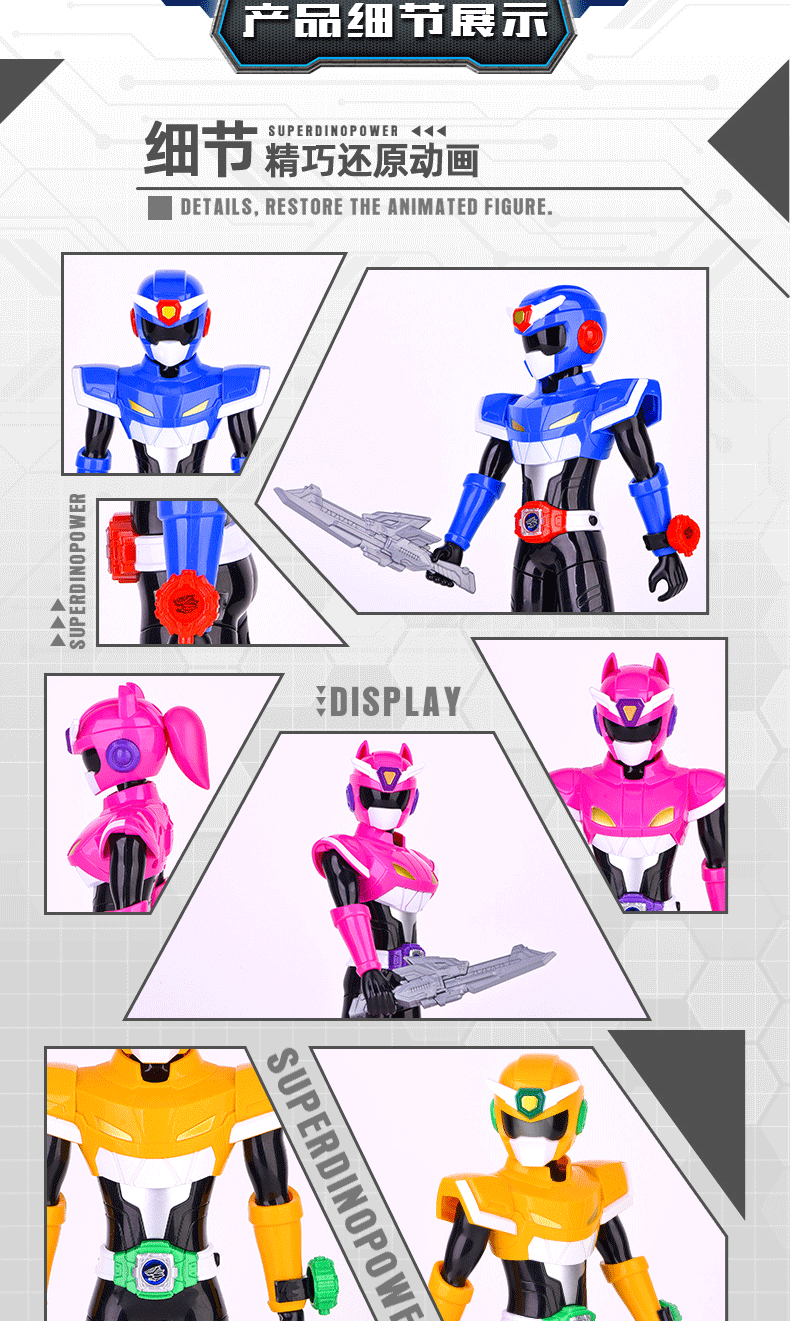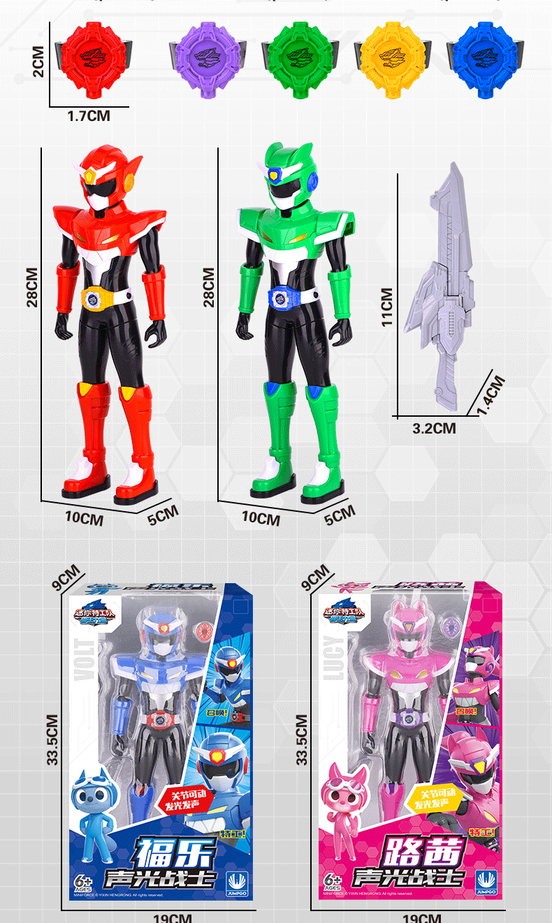 미니 에이전트 팀 야수왕 파워 사운드 라이트 워리어 메카 관절 가동 가능한 푸레루시 소년 로봇 장난감