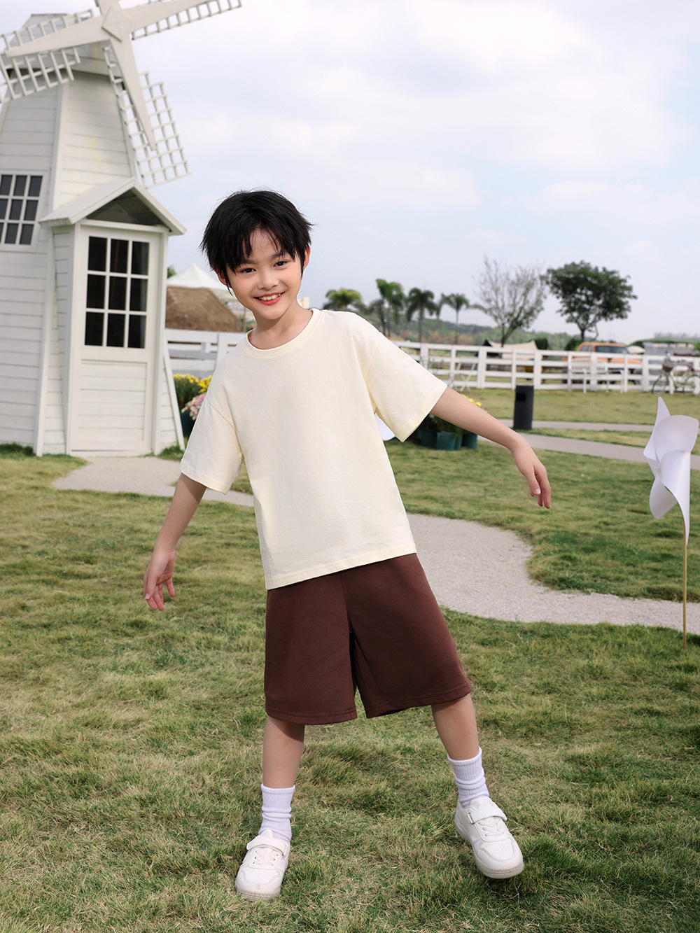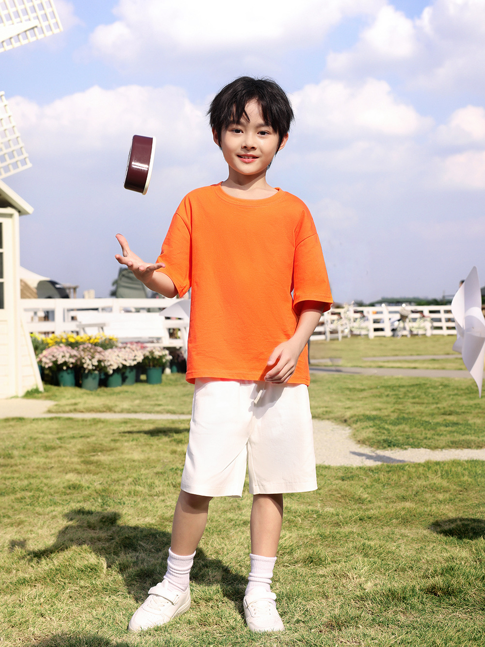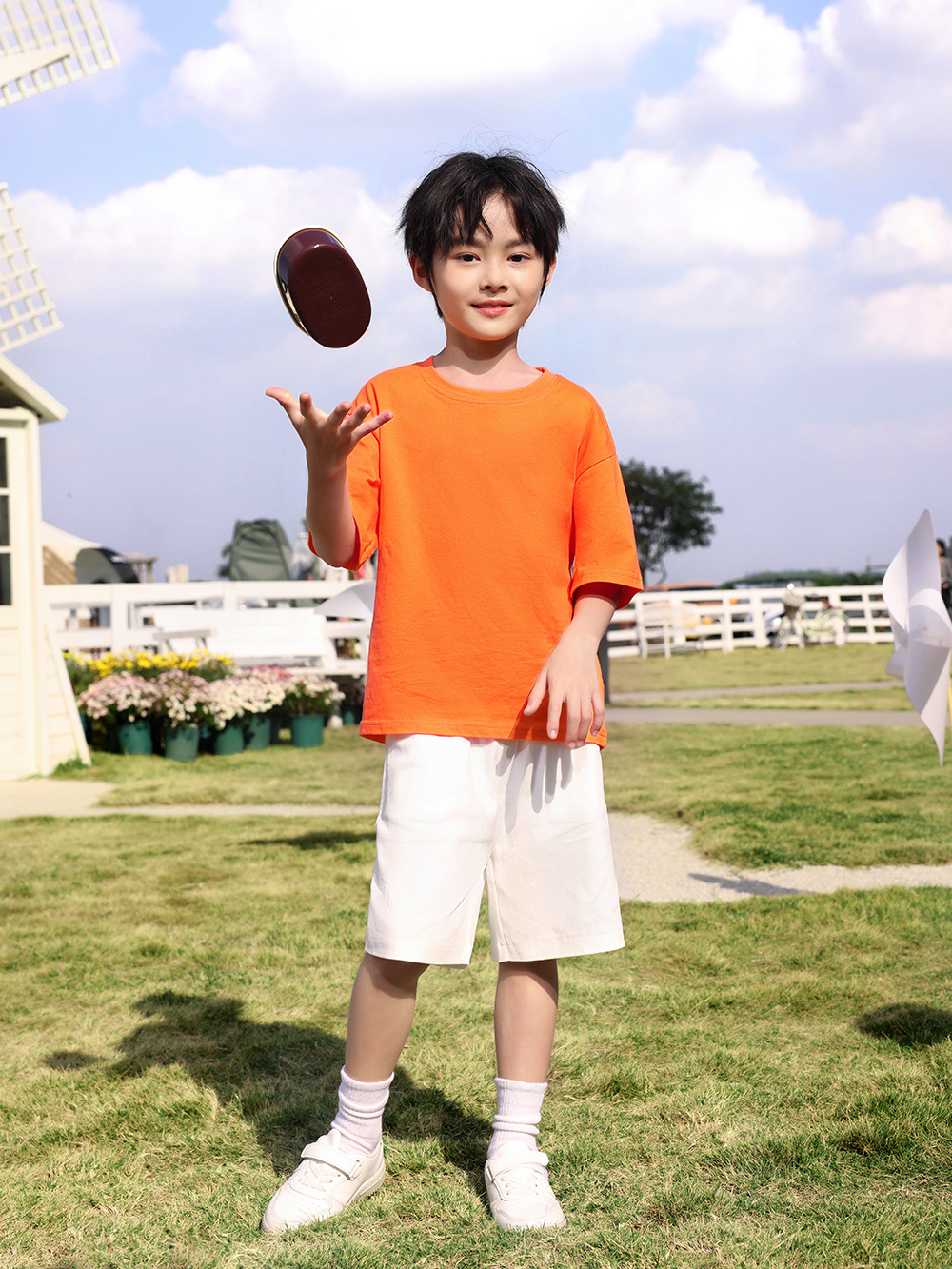 학교 교복 정원 옷 아동복 어깨 방울 둥근 목 T 면 200g 둥근 목 셔츠 빠른 가공 아동면 반소매 티셔츠