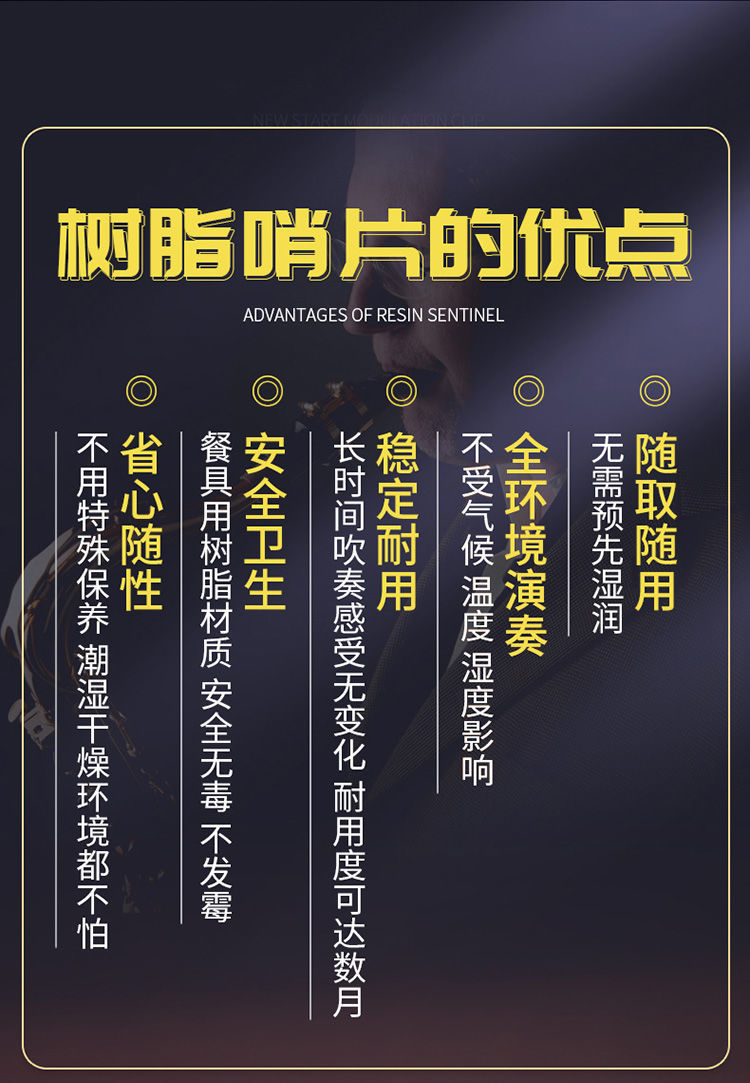 Xuanhe 색소폰 수지 호루라기 초보 테너 2.5/de-e 색소폰 내구성 리드