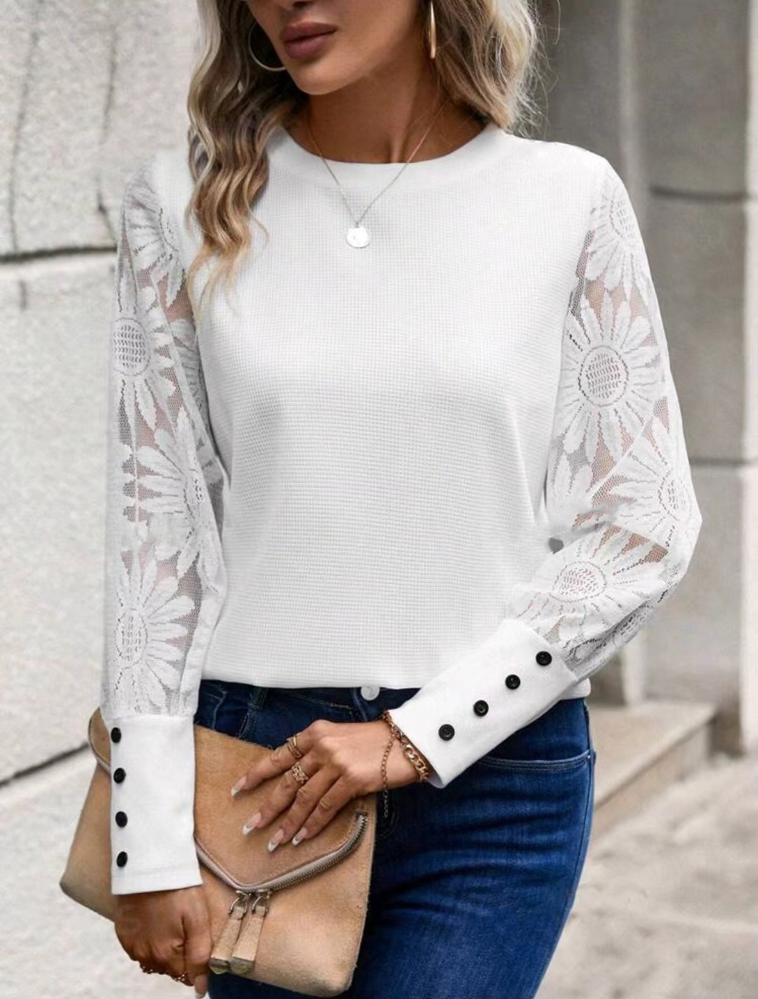 2024 아마존 독립 역 폭발 여성 와플 버튼 여성 정상스토어 가기