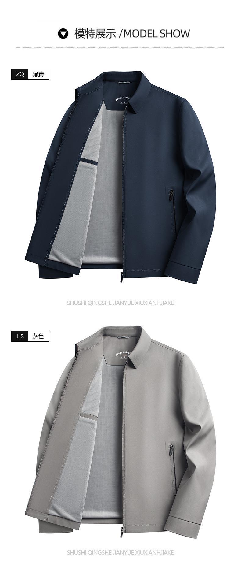 春秋商务风夹克外套现货简约爸爸装中年男士翻领上衣外套行政夹克