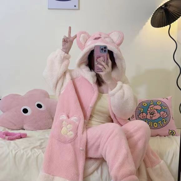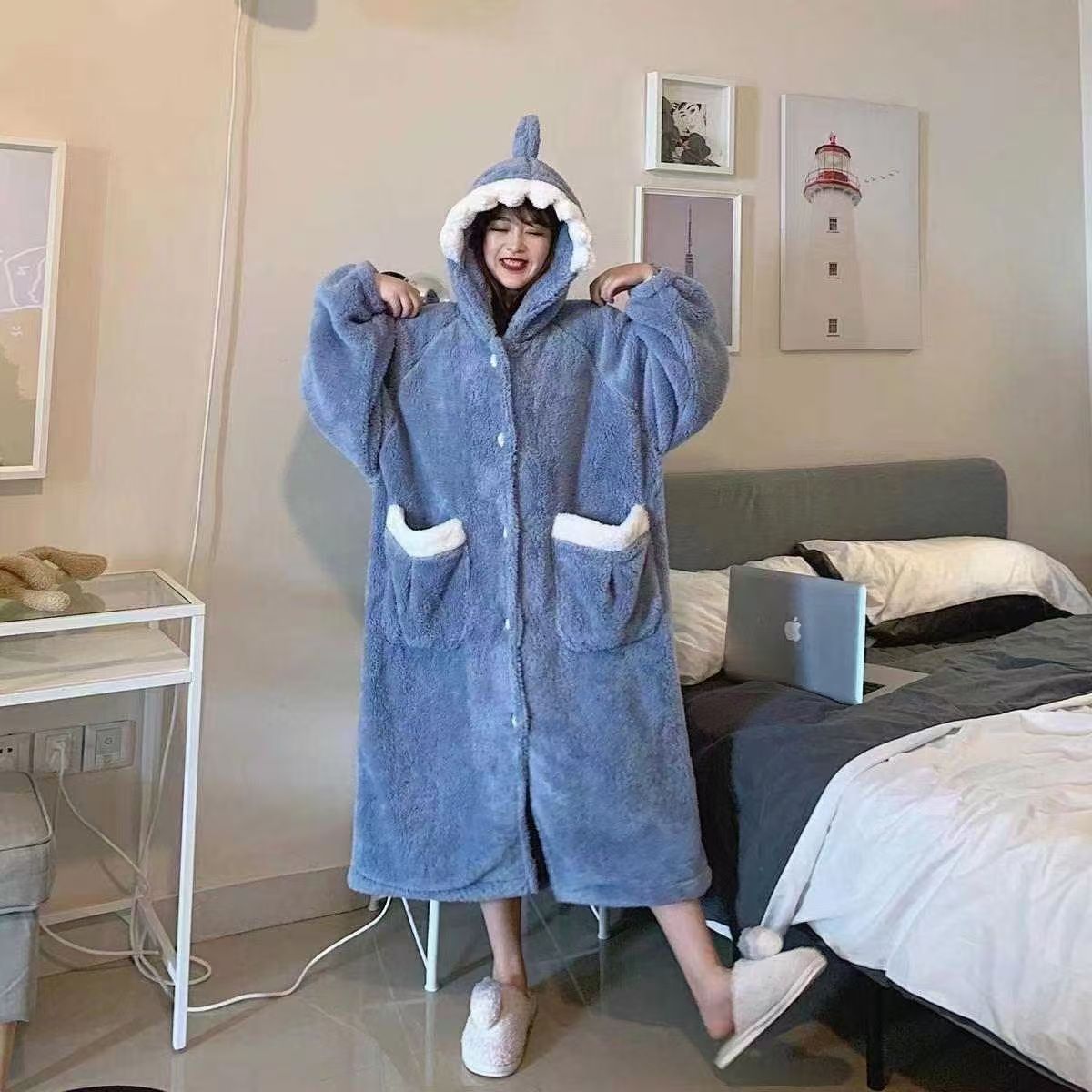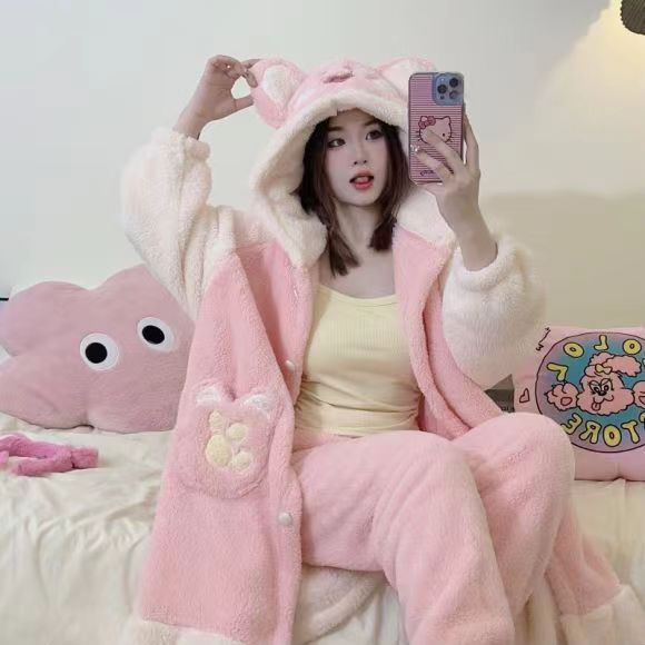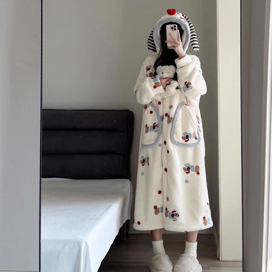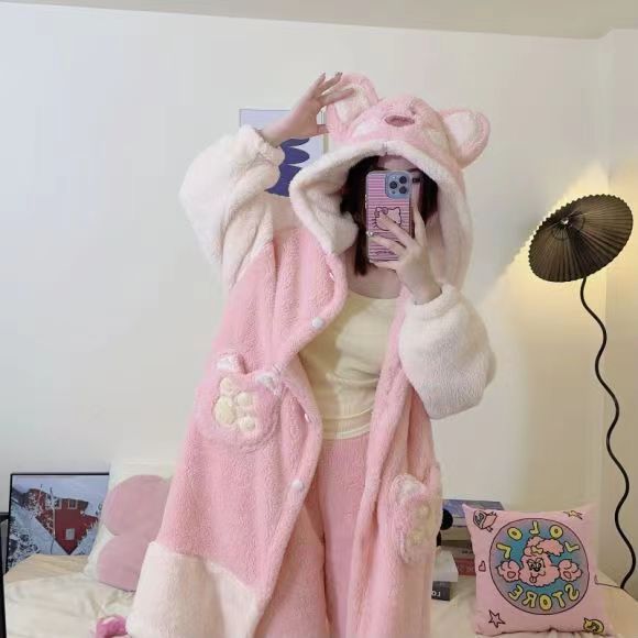 미운 물고기 공룡 파자마 리틀 비 폭스 산호 양털 나이트 가운 카피 발라 따뜻한 커플 홈 옷을 입을 수 있습니다스토어 가기