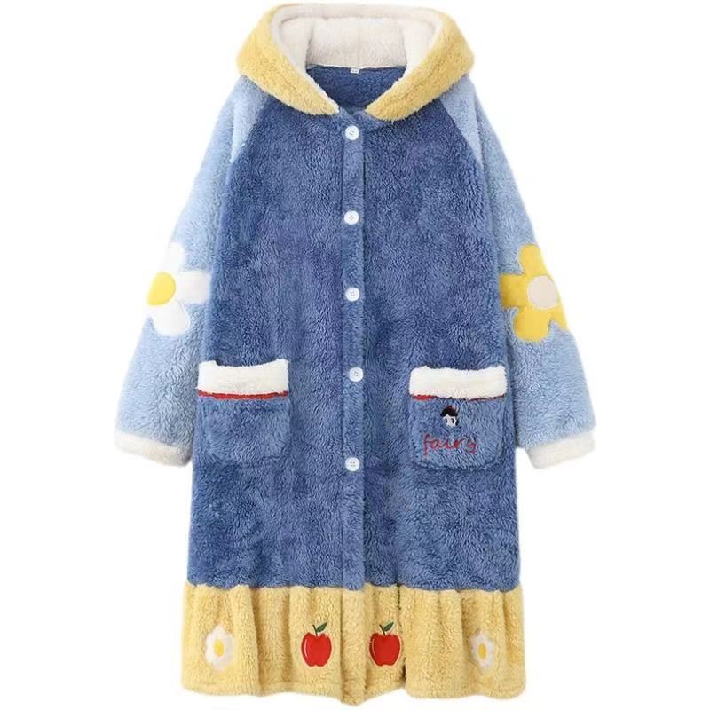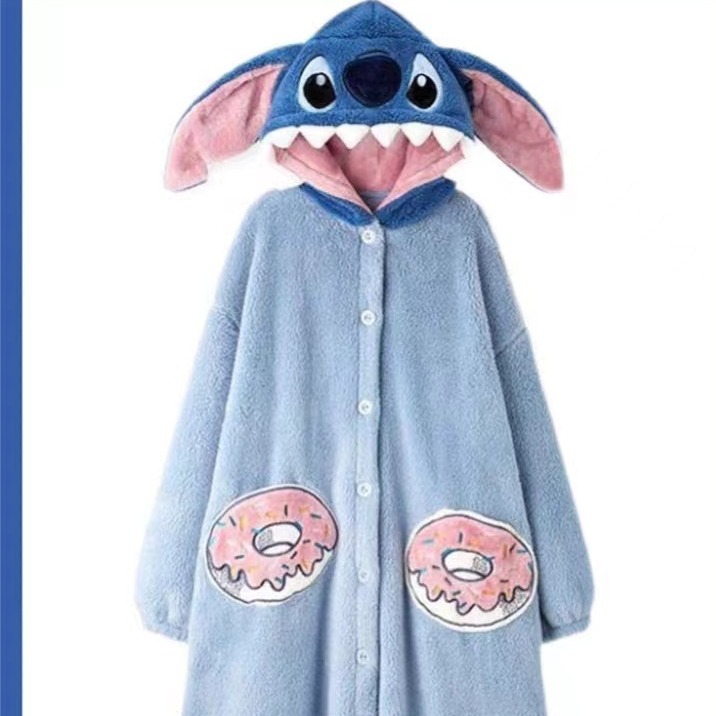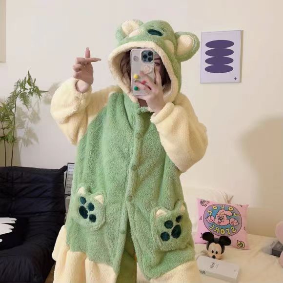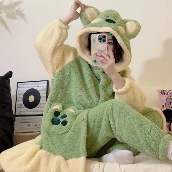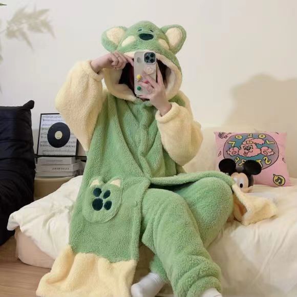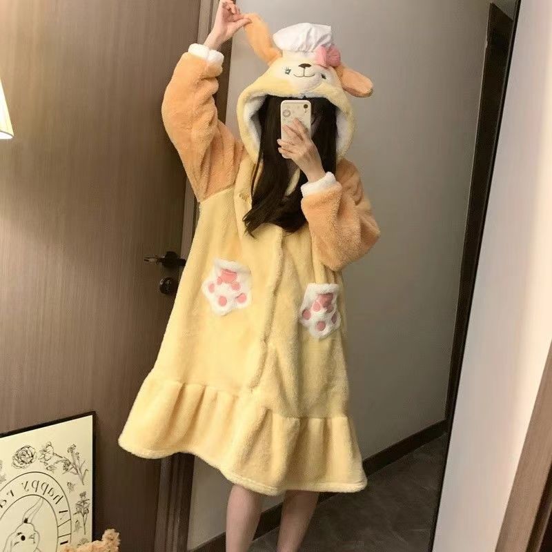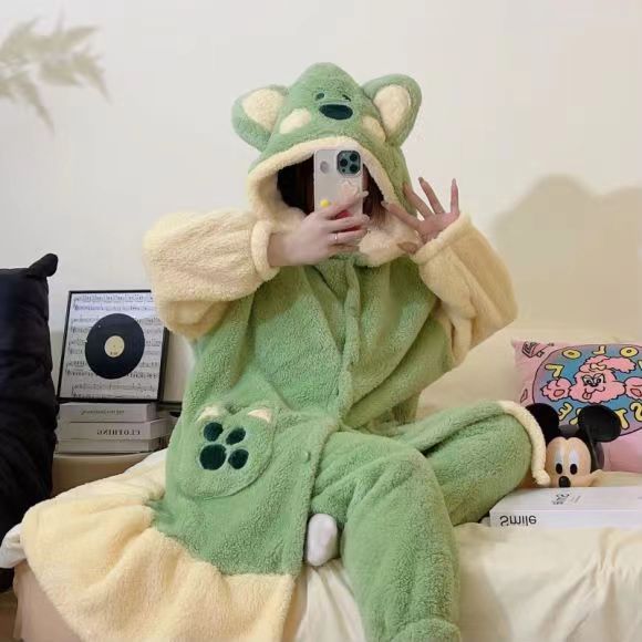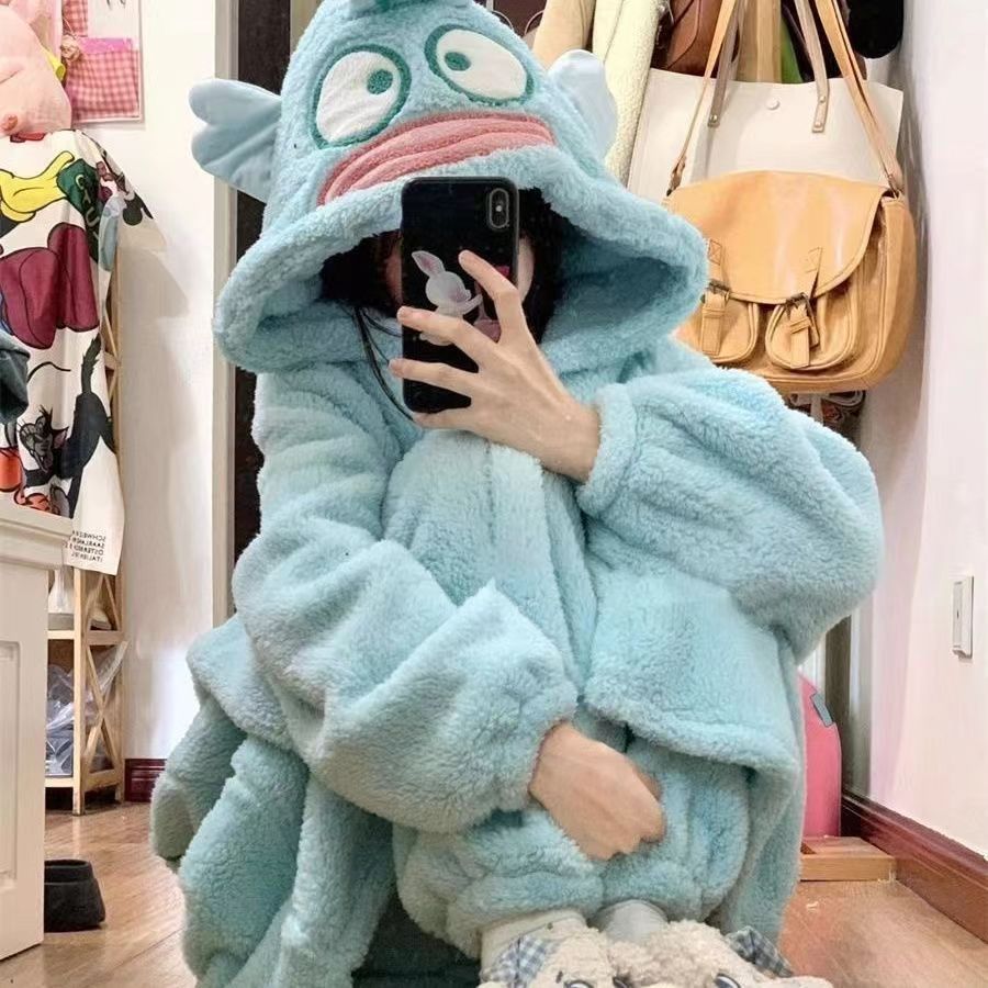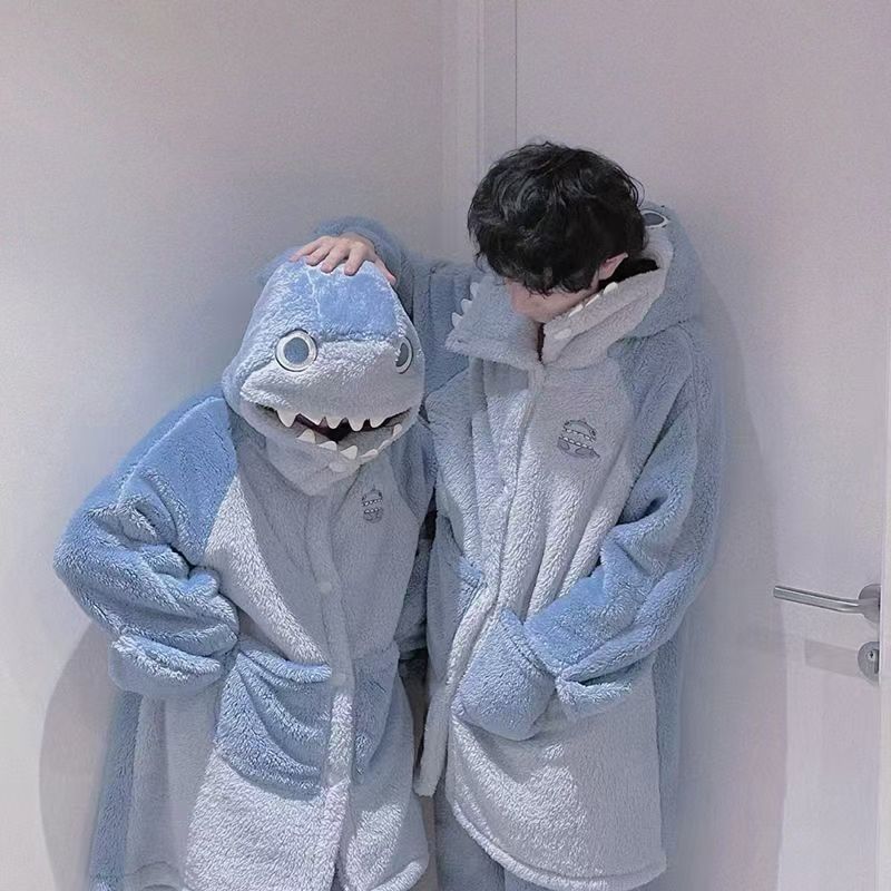 미운 물고기 공룡 파자마 리틀 비 폭스 산호 양털 나이트 가운 카피 발라 따뜻한 커플 홈 옷을 입을 수 있습니다
