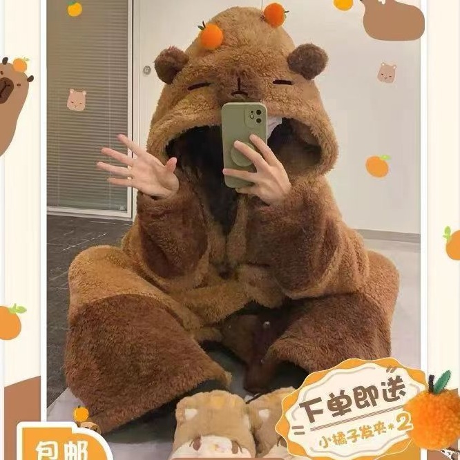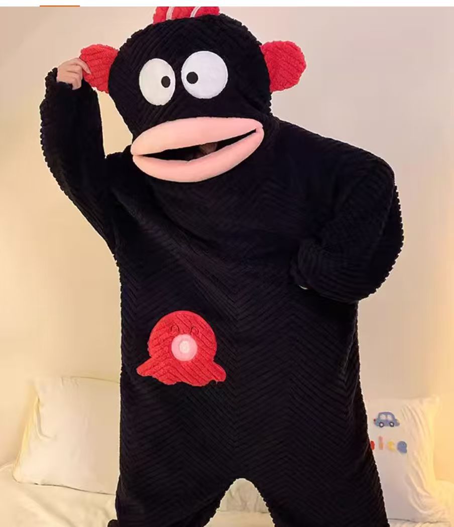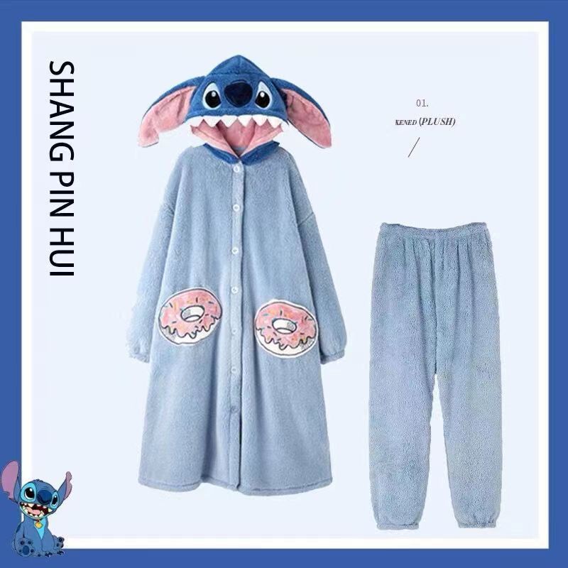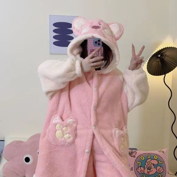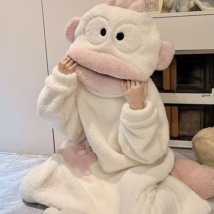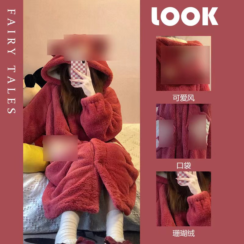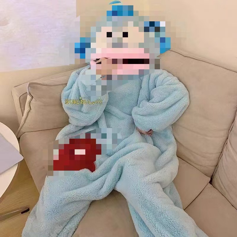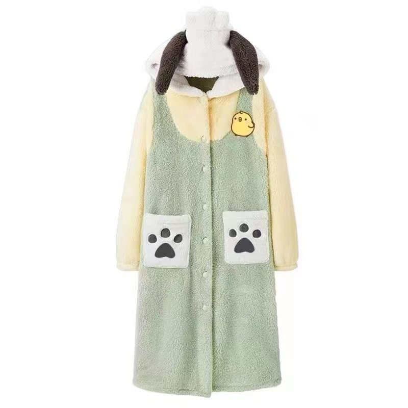 미운 물고기 공룡 파자마 리틀 비 폭스 산호 양털 나이트 가운 카피 발라 따뜻한 커플 홈 옷을 입을 수 있습니다