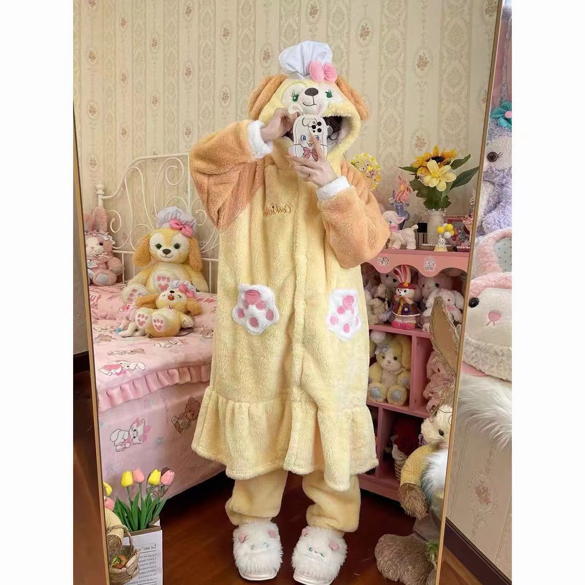 • 베이지색 오리 잠옷과 신발