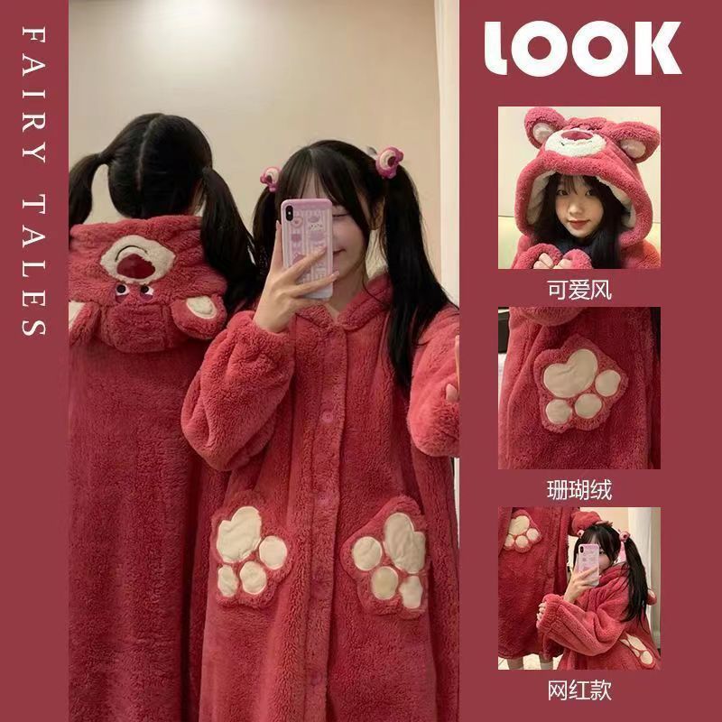 • 두꺼운 딸기 곰 잠옷