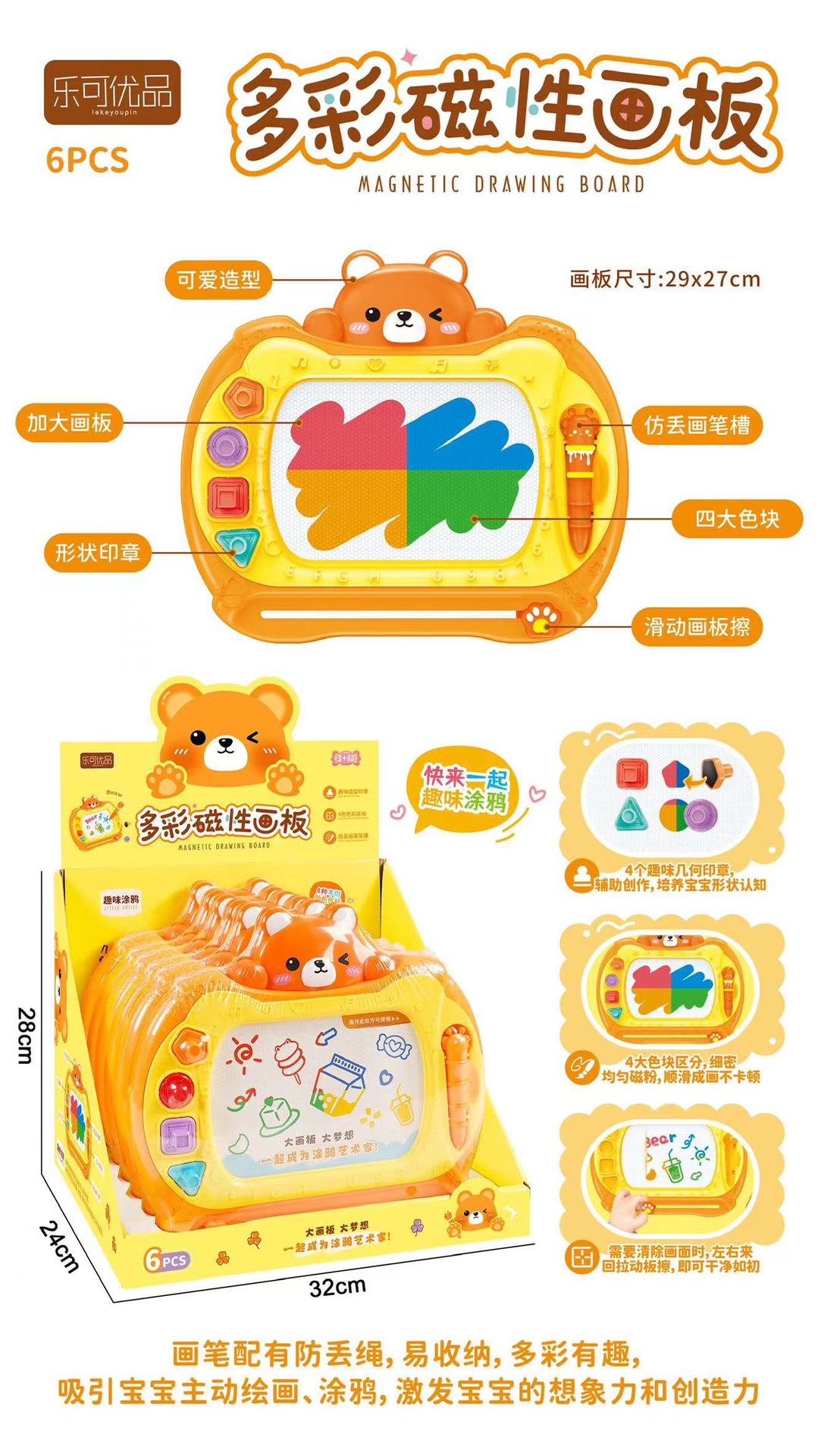 어린이용 그림판 개구리 그림 다채로운 자석 아기 쓰기판 역할놀이 낙서 장난감 스탬프 포함 색칠놀이스토어 가기
