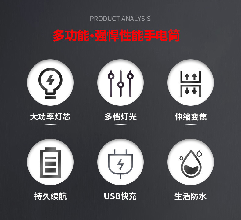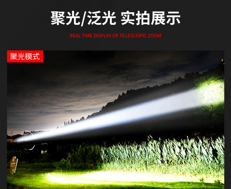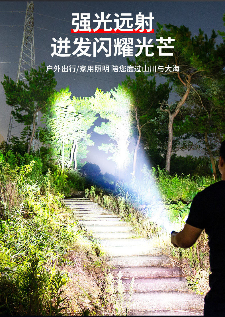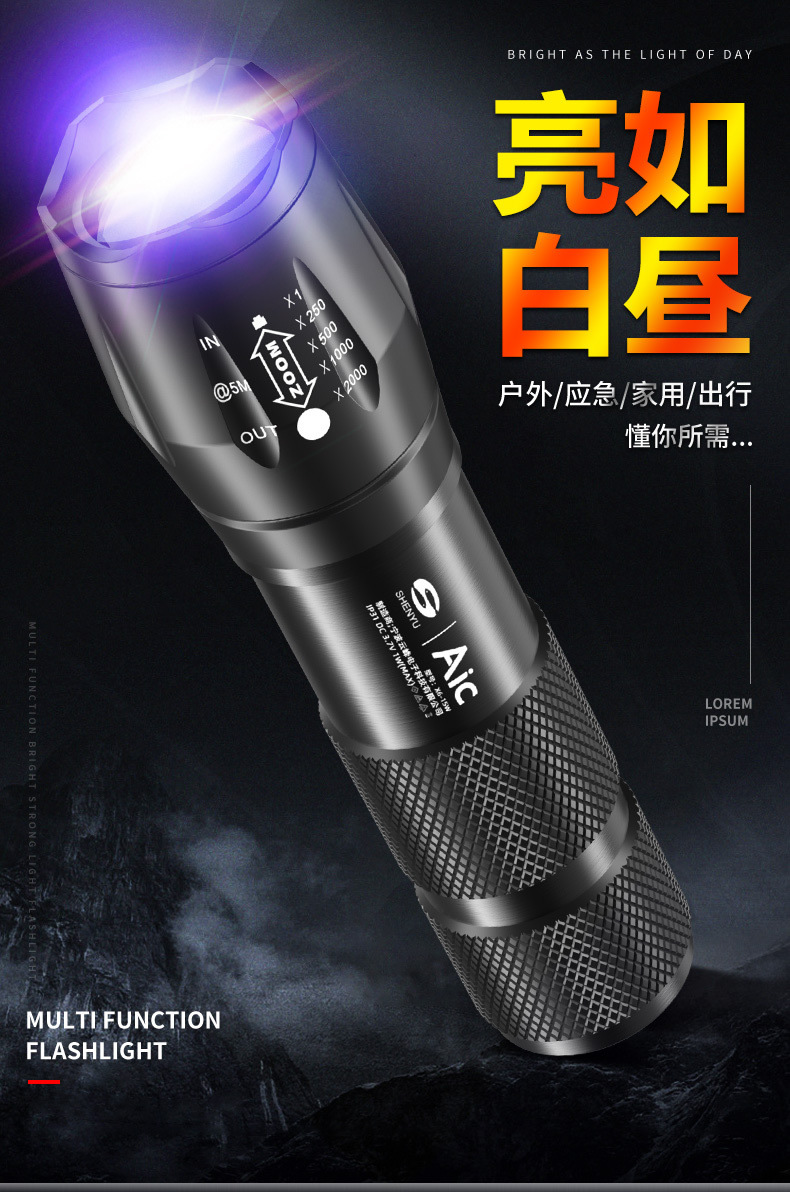 • X5 하이라이트 럭셔리 500W USB 충전식 내장 18650 리튬 배터리 줌 충전 보물 기능 사이드 라이트 컬러 박스 포장