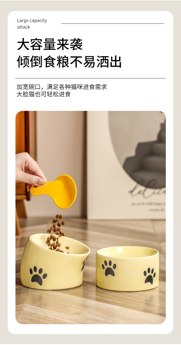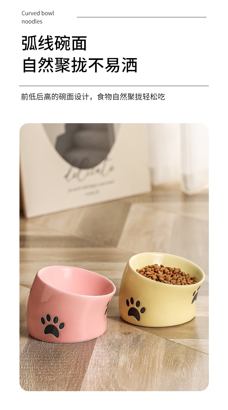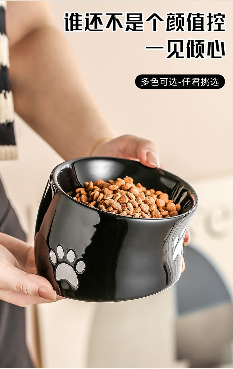 고양이 그릇 세라믹 경사 입 높은 발 고양이 음식 분지 고양이 마시는 그릇 목 보호 귀여운 고양이 먹이 그릇 검은 턱 보호 애완 동물 그릇