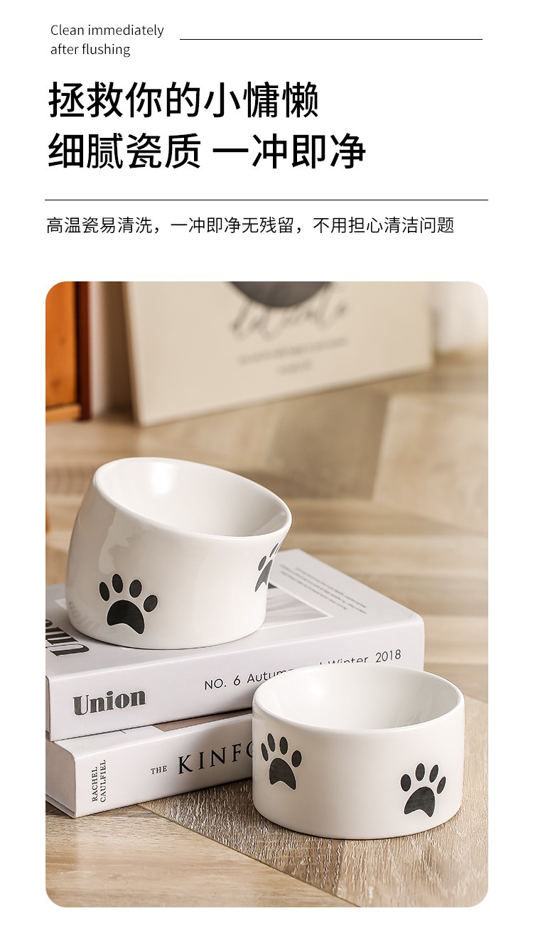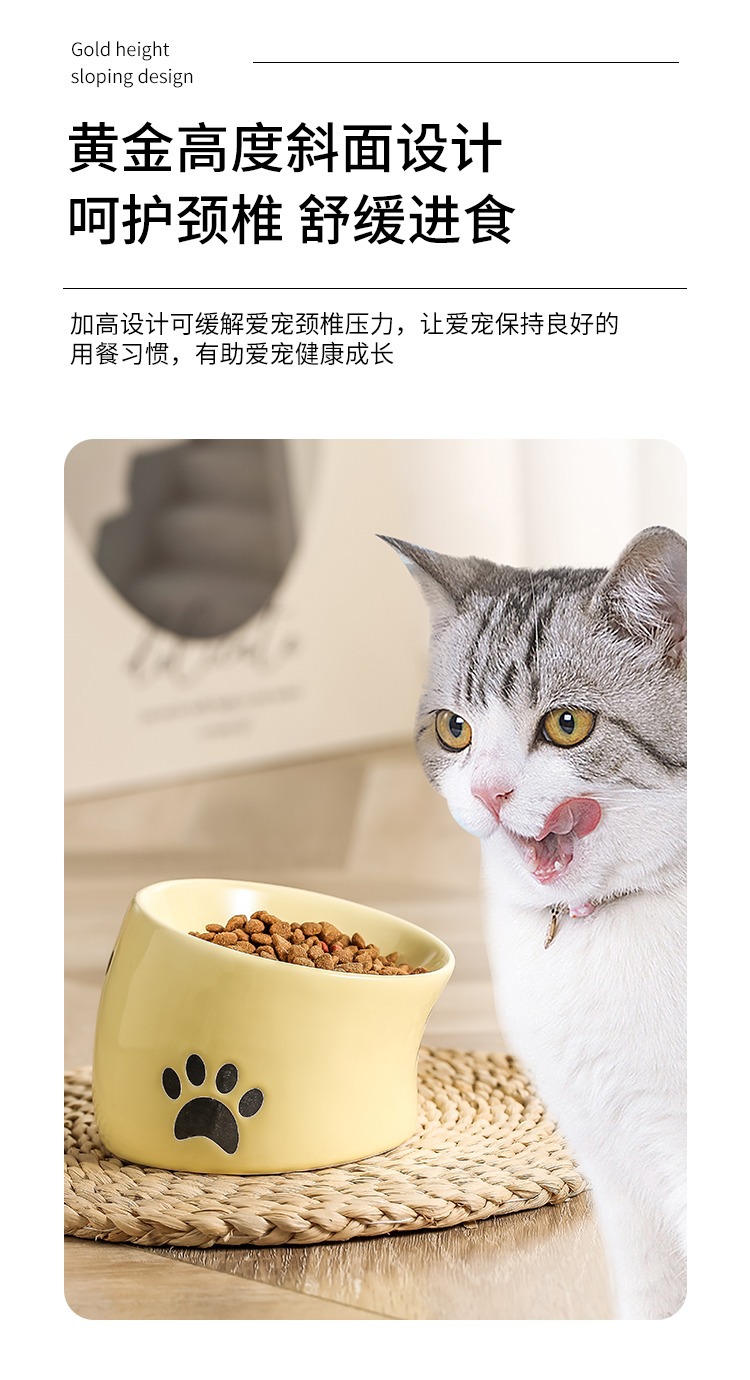 고양이 그릇 세라믹 경사 입 높은 발 고양이 음식 분지 고양이 마시는 그릇 목 보호 귀여운 고양이 먹이 그릇 검은 턱 보호 애완 동물 그릇스토어 가기