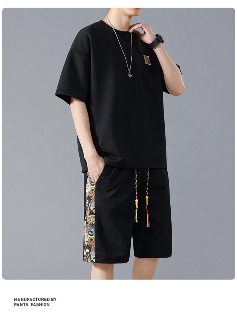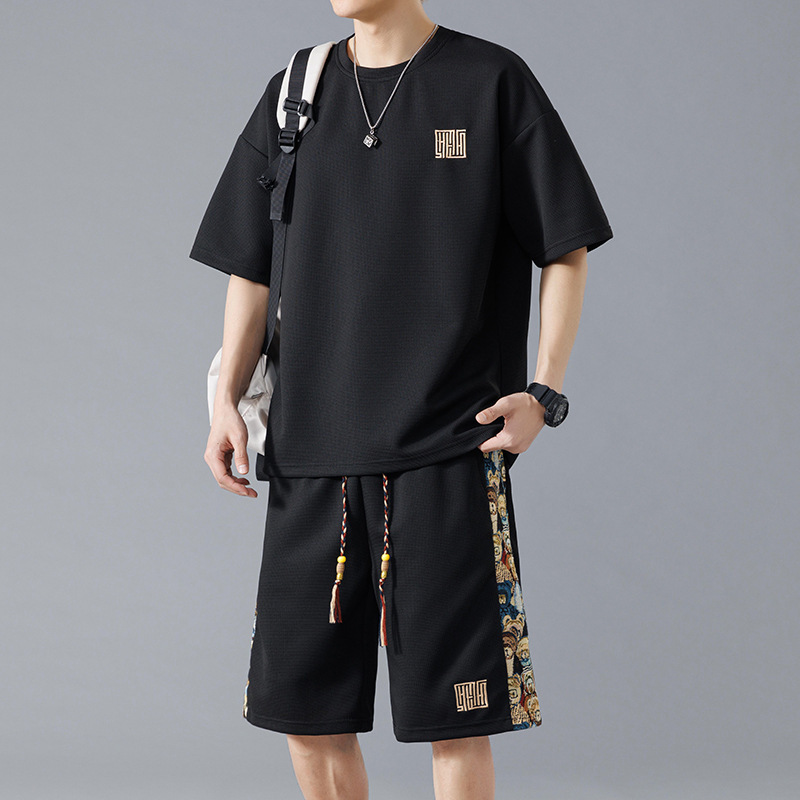 NASA 중국 스포츠 세트 남자 여름 아이스 실크 빠른 건조 반팔 티셔츠 경량 통기성 대형 캐주얼 반바지