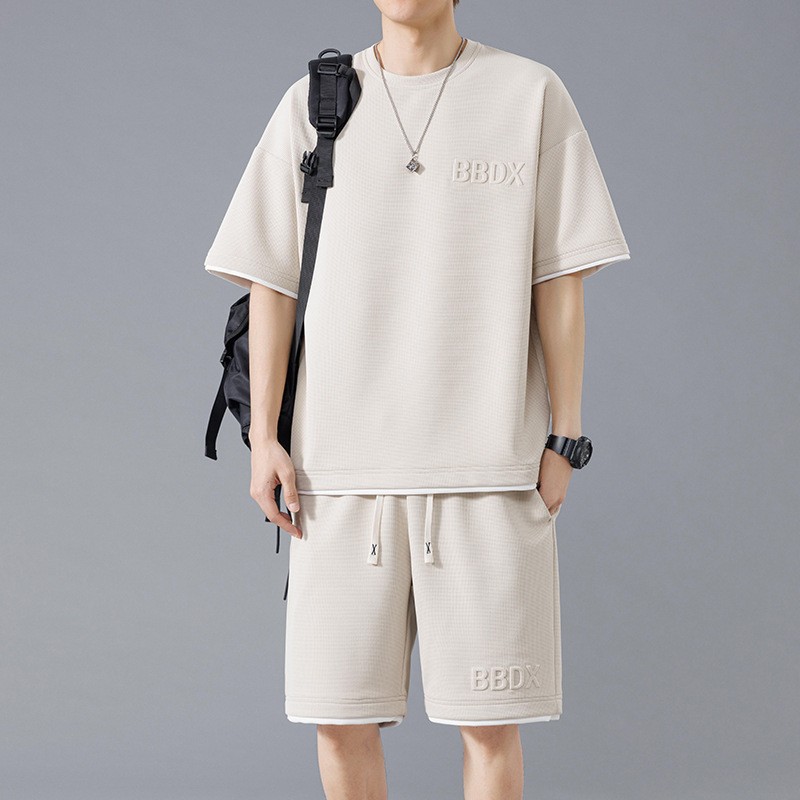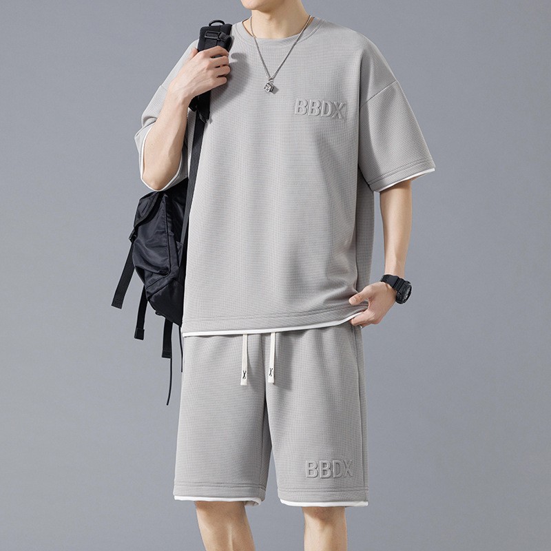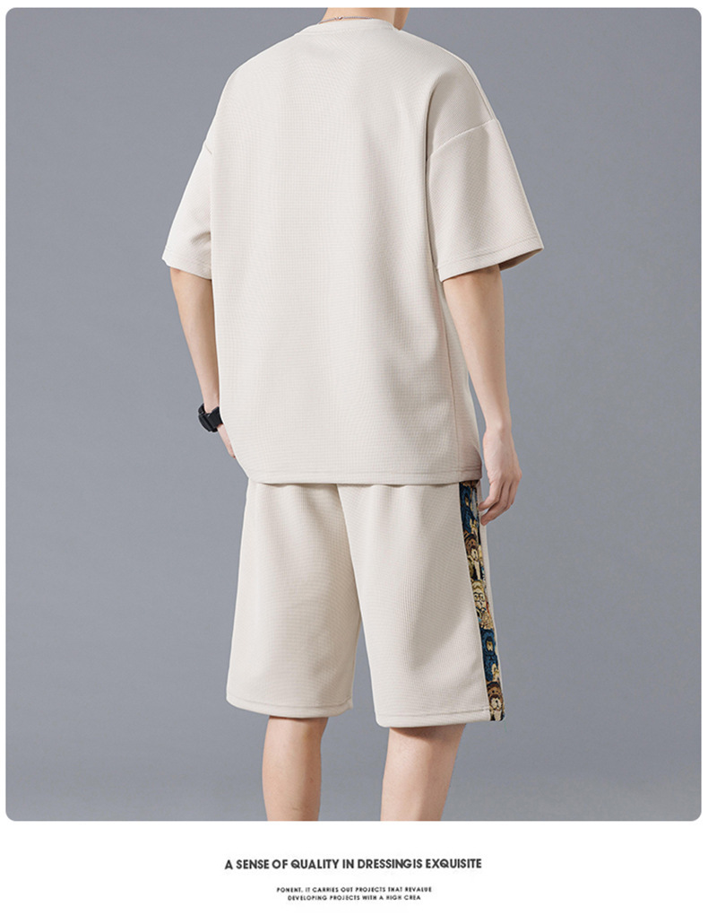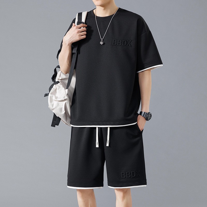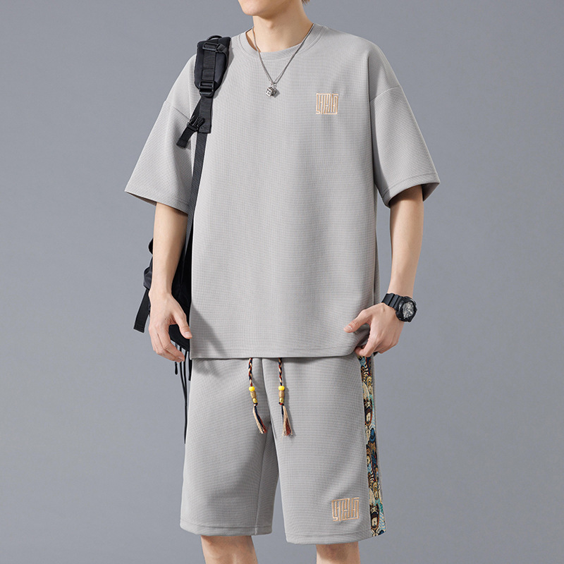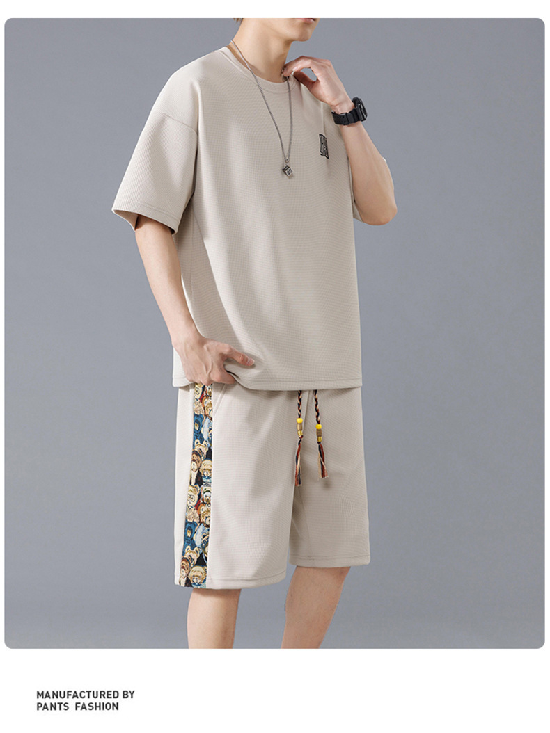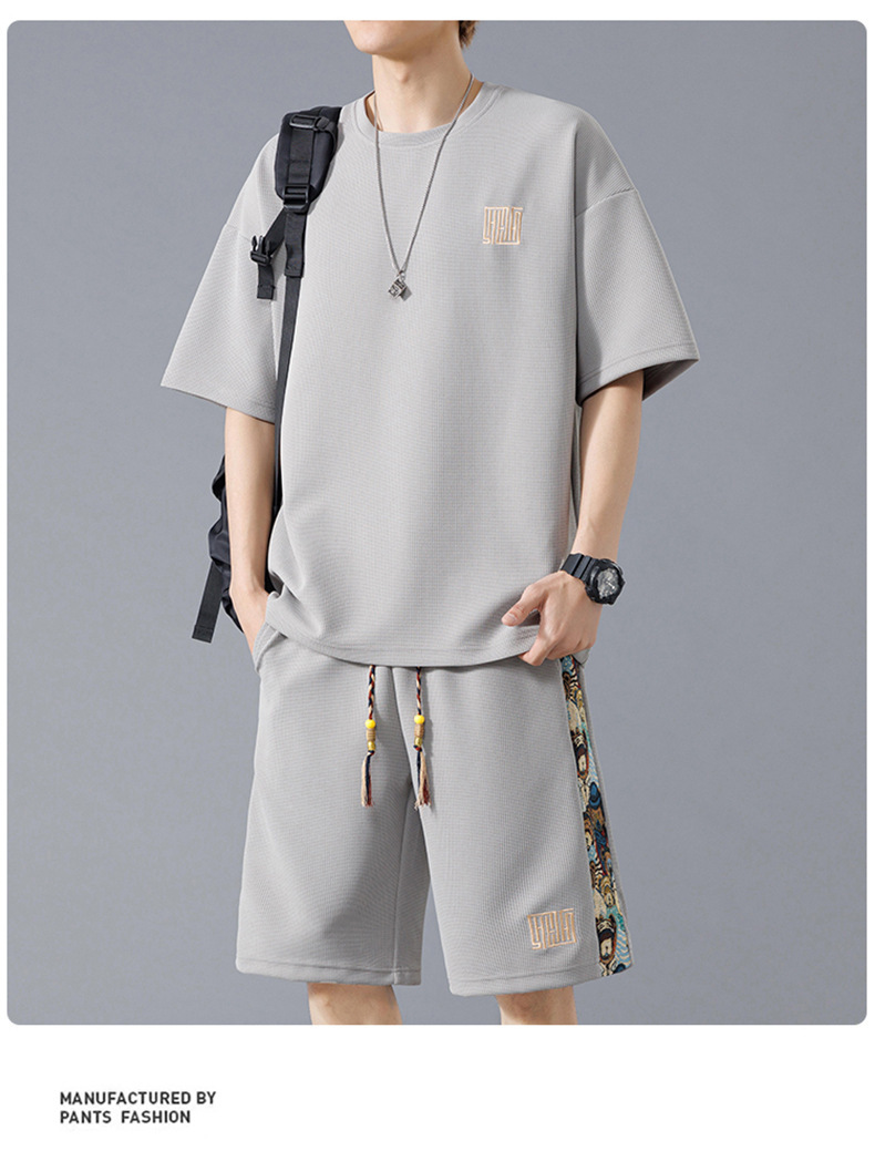 NASA 중국 스포츠 세트 남자 여름 아이스 실크 빠른 건조 반팔 티셔츠 경량 통기성 대형 캐주얼 반바지스토어 가기