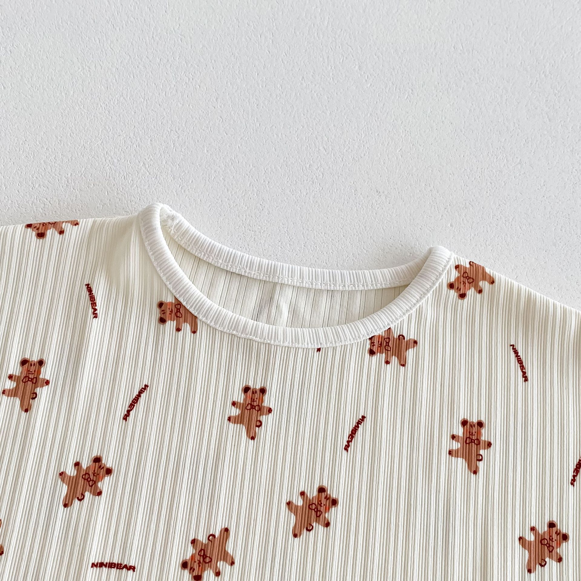 여름 새 2024 년 어린이 한국 에어컨 의류 귀여운 곰 Pleated 소년 소녀 여름 홈 세트스토어 가기