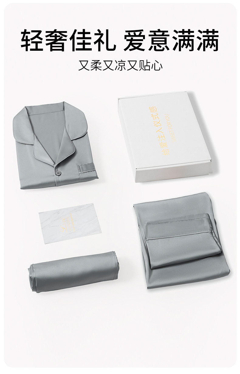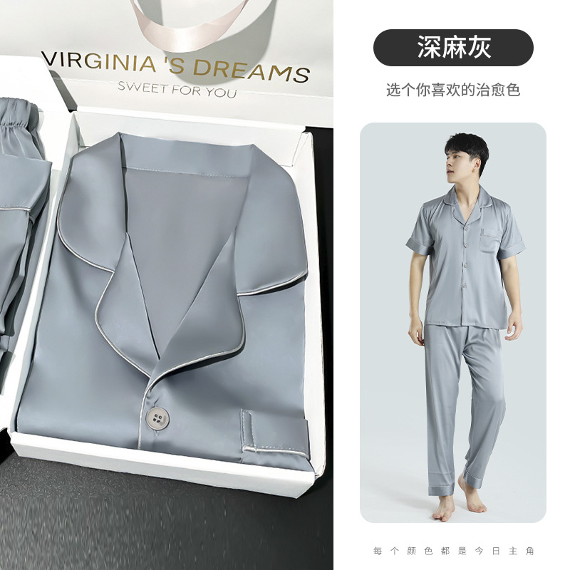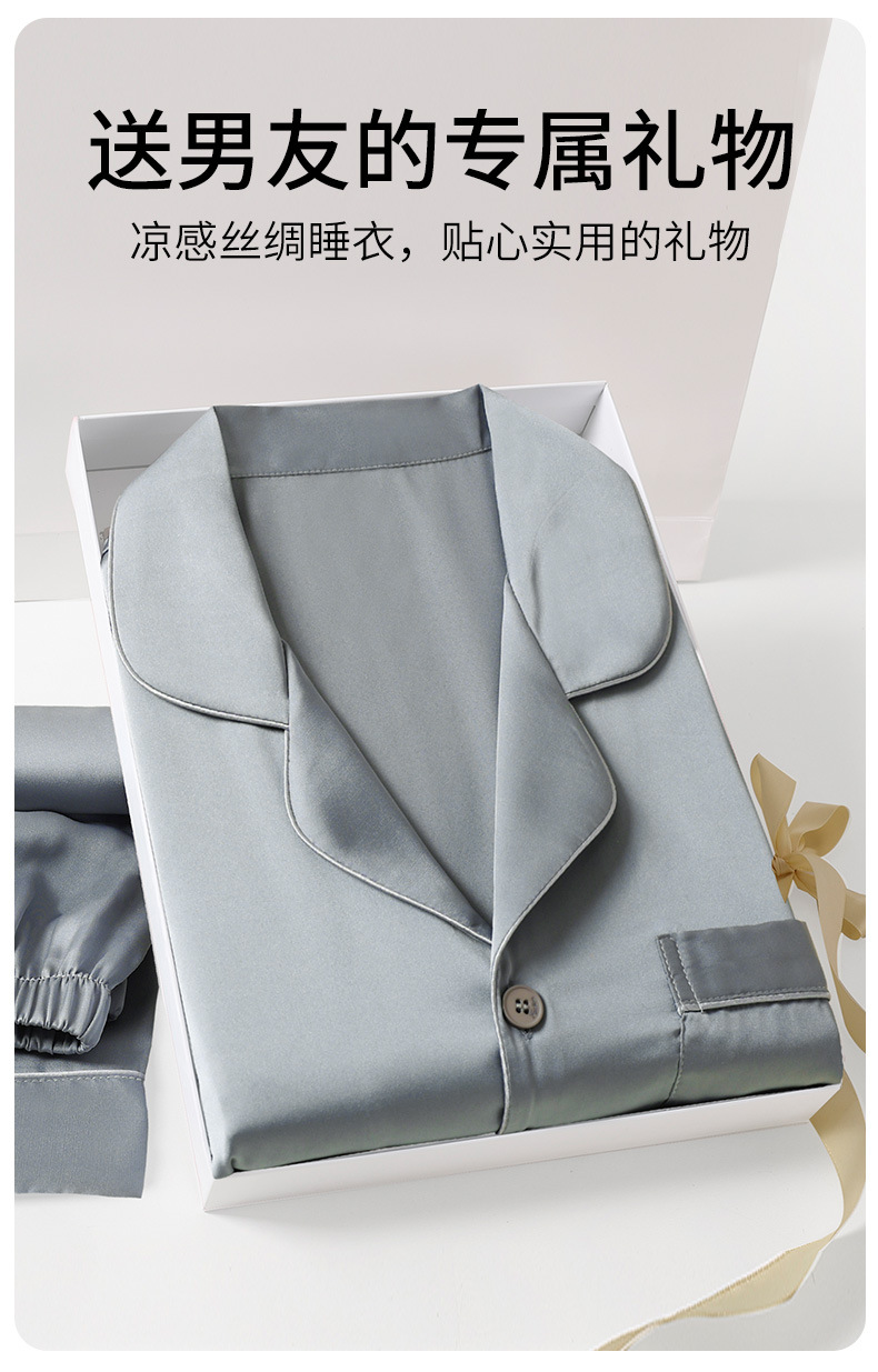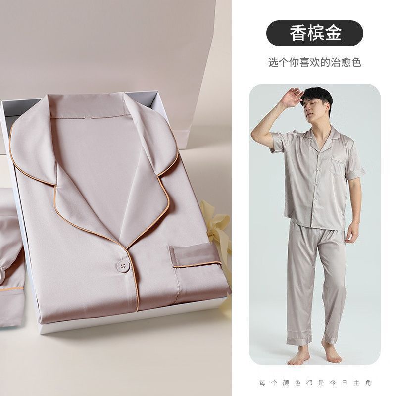 잠옷 남자 봄과 여름 아이스 실크 하이 엔드 느낌 실키 소프트 홈 의류 세트 남성용 남자 친구 선물