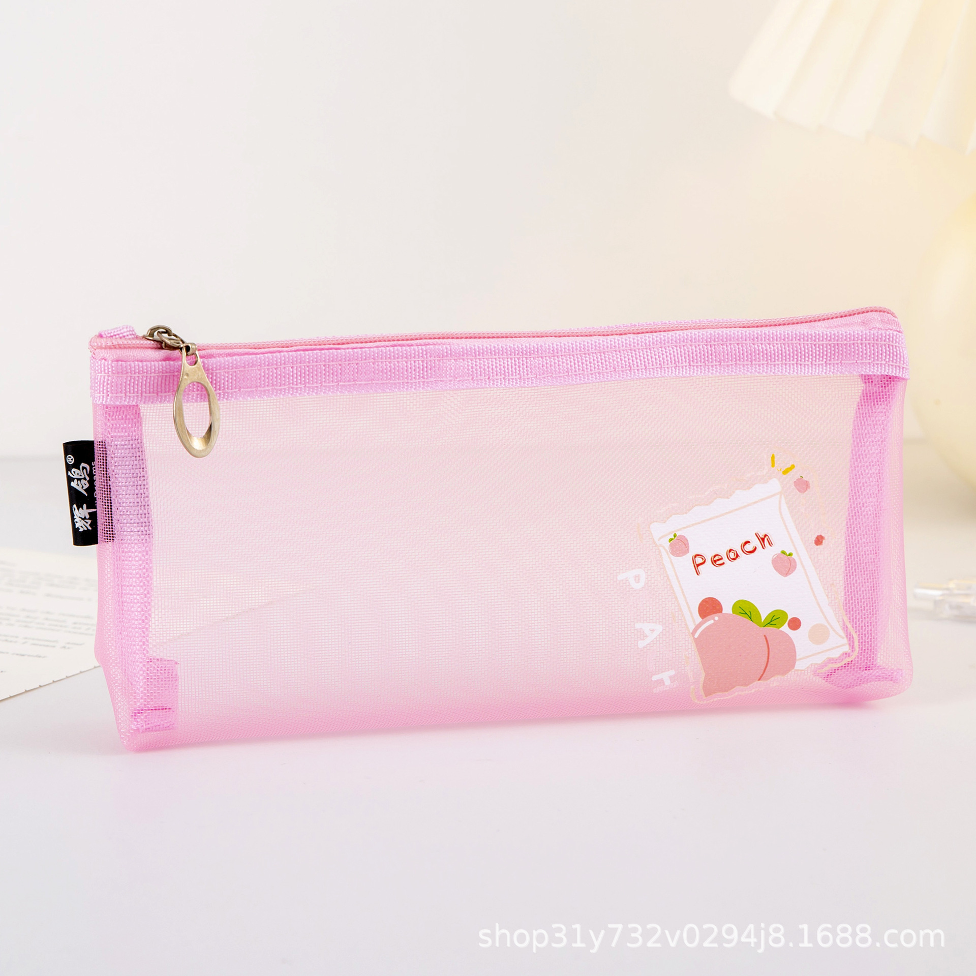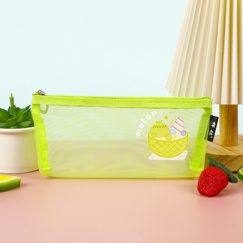 귀여운 망사 필통 ins 한국 창의적이고 심플한 지퍼 문구 가방 학생 시험용 휴대용 투명 필통
