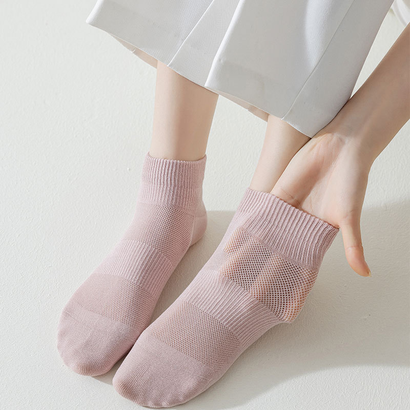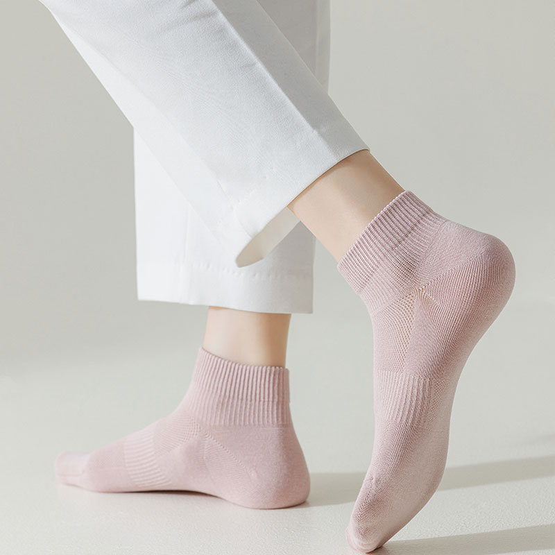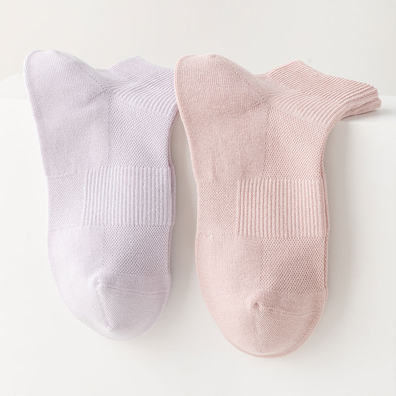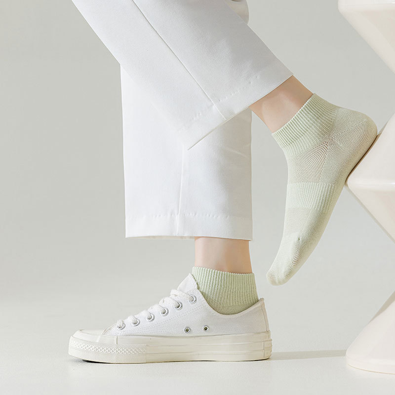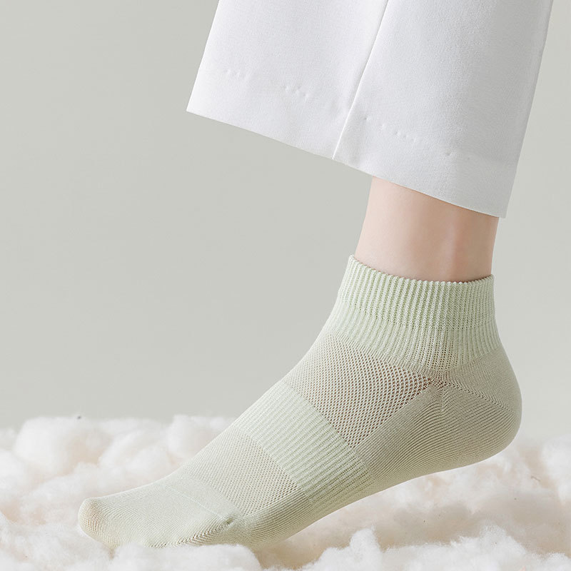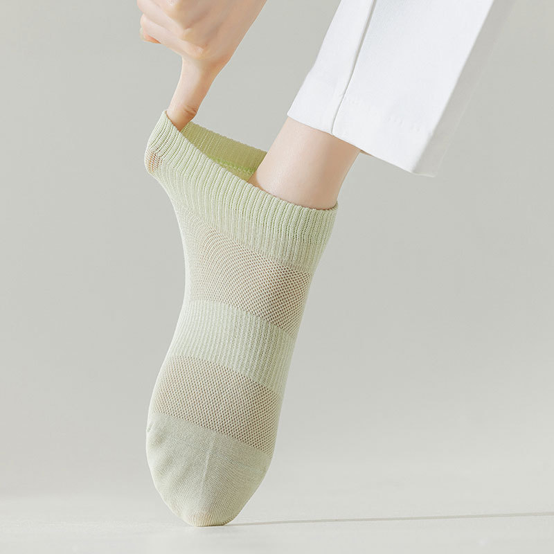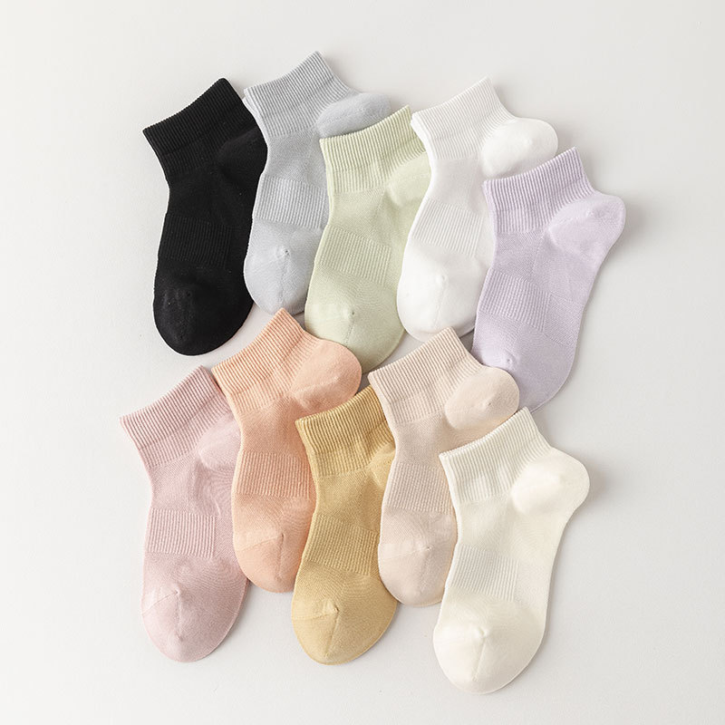 봄과 여름 양말 여성용 솔리드 컬러 코튼 양말 안티 필링 여성용 뼈없는 양말 캐주얼 양말 주지 메쉬 통기성 여성 양말