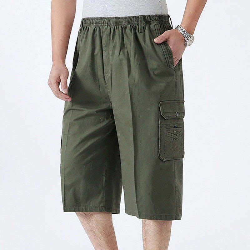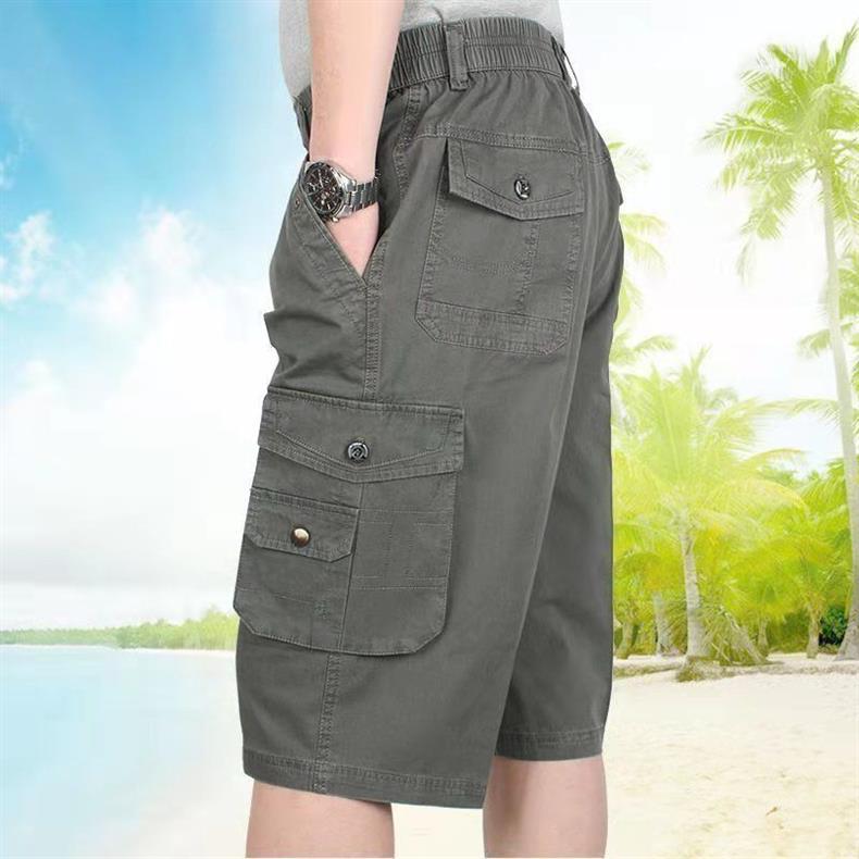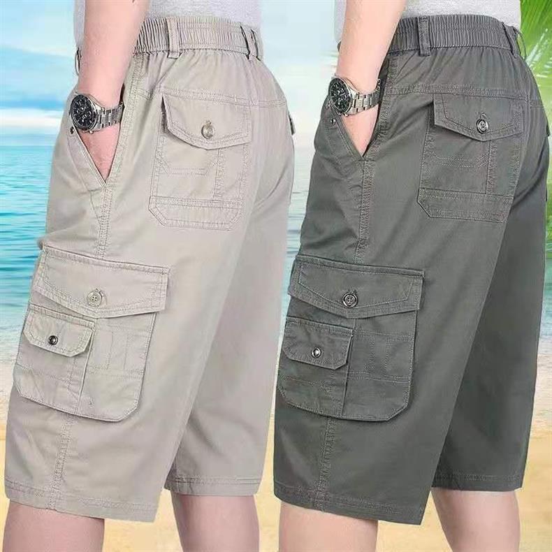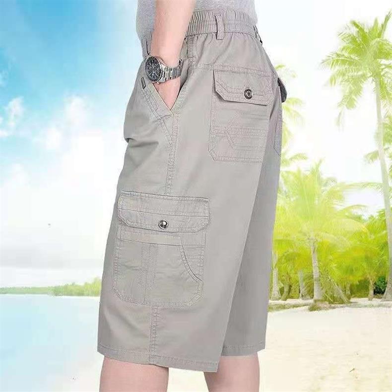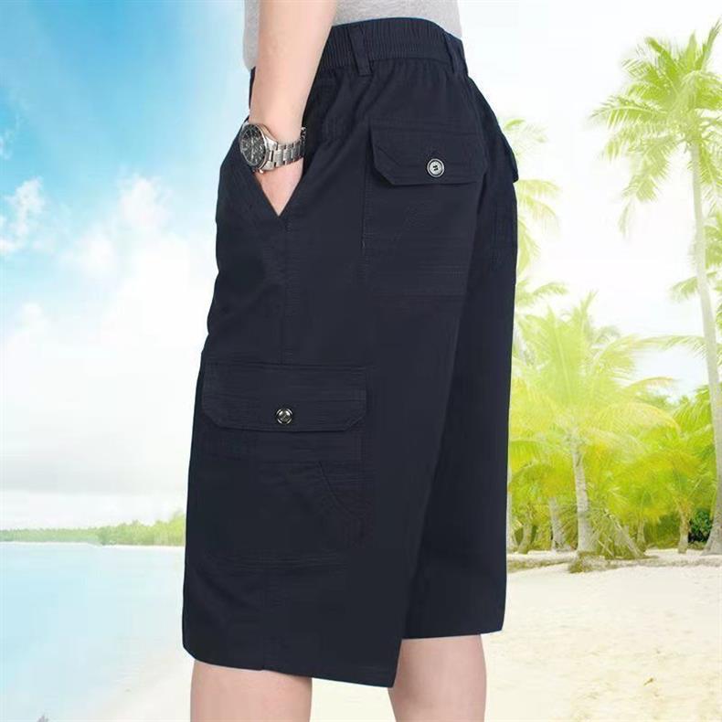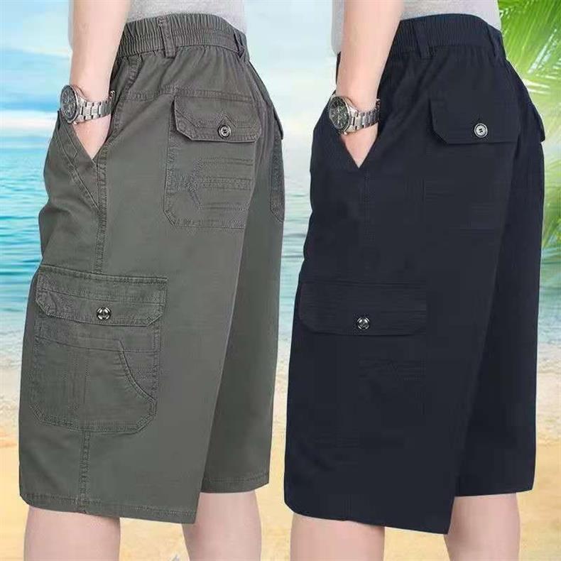 남성 카프리 바지 중년 및 노인 바지 느슨한 캐주얼 카프리 바지 여름 아빠의 아버지 작업 반바지