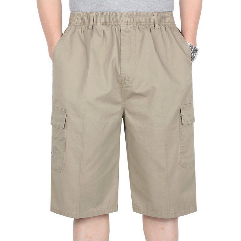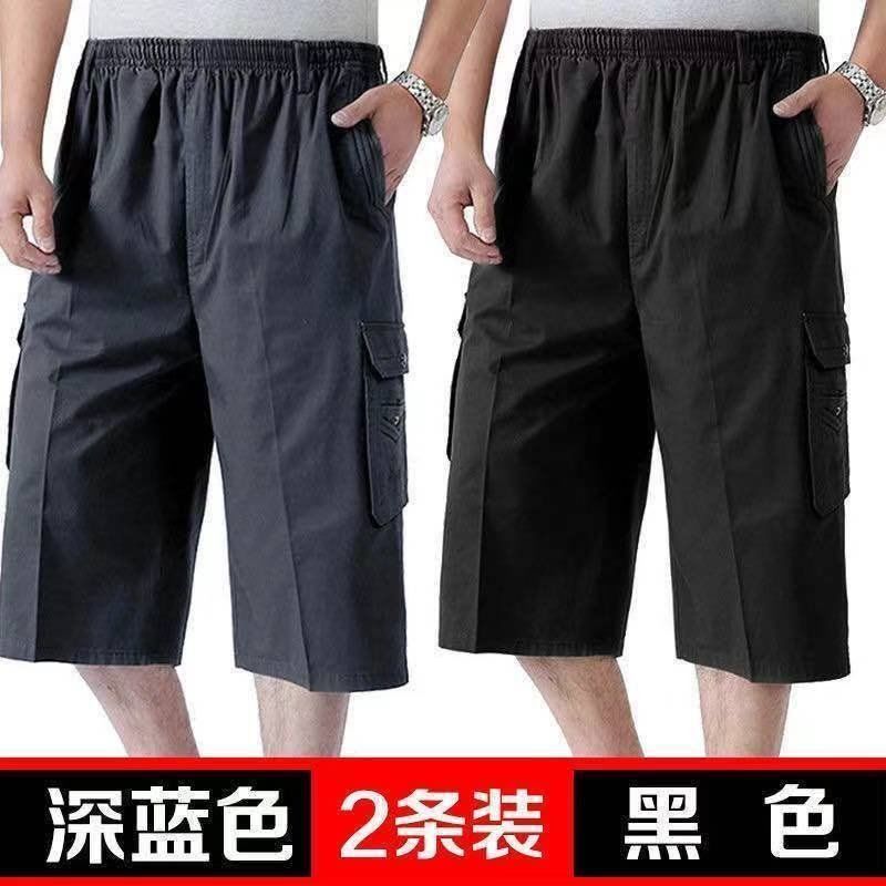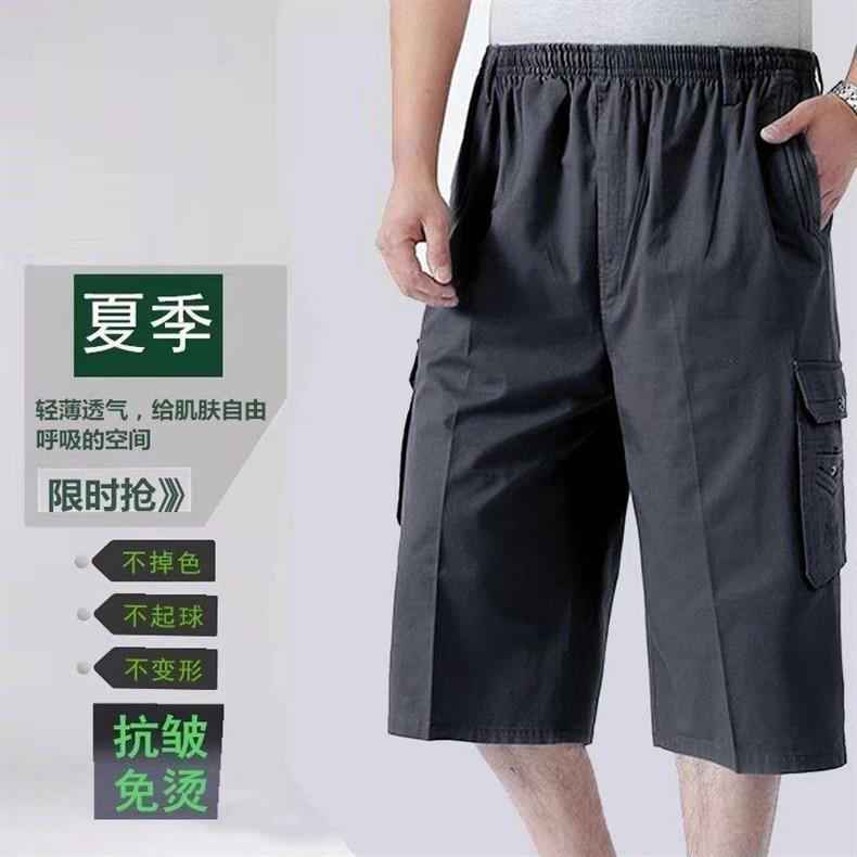 남성 카프리 바지 중년 및 노인 바지 느슨한 캐주얼 카프리 바지 여름 아빠의 아버지 작업 반바지스토어 가기