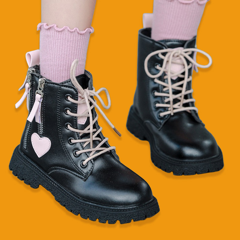 여아용 부츠, 아동용 마틴 부츠, 플러스 사이즈 면 부츠, 신상 중대형 아동용 가죽 부츠, 27-37 사이즈스토어 가기