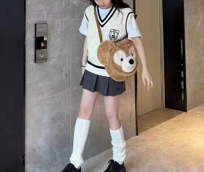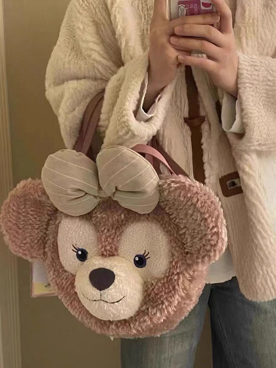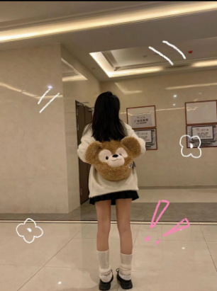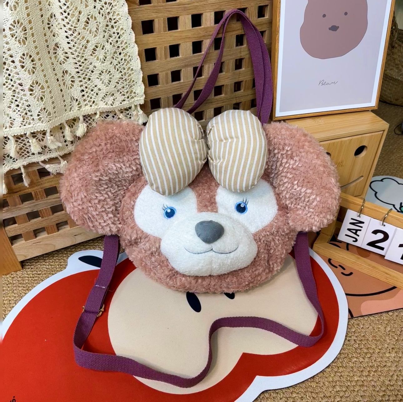 더피 베어 큰 얼굴 가방 2024 어린이 봉제 배낭 귀여운 만화 여행 배낭 생일 선물
