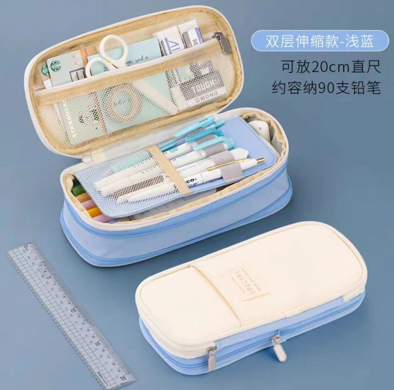 • 대비 색상 개폐식 연필 케이스-라이트 블루