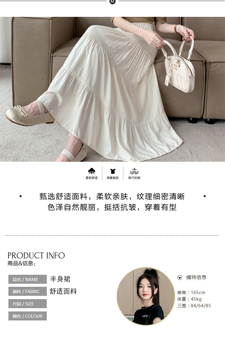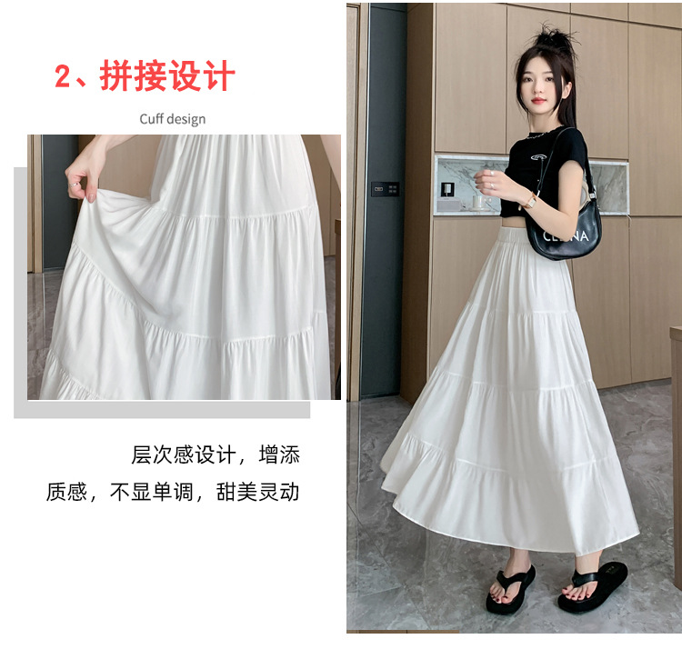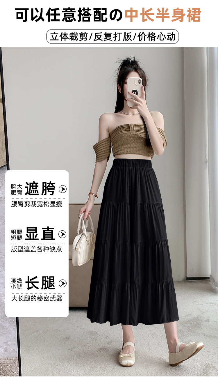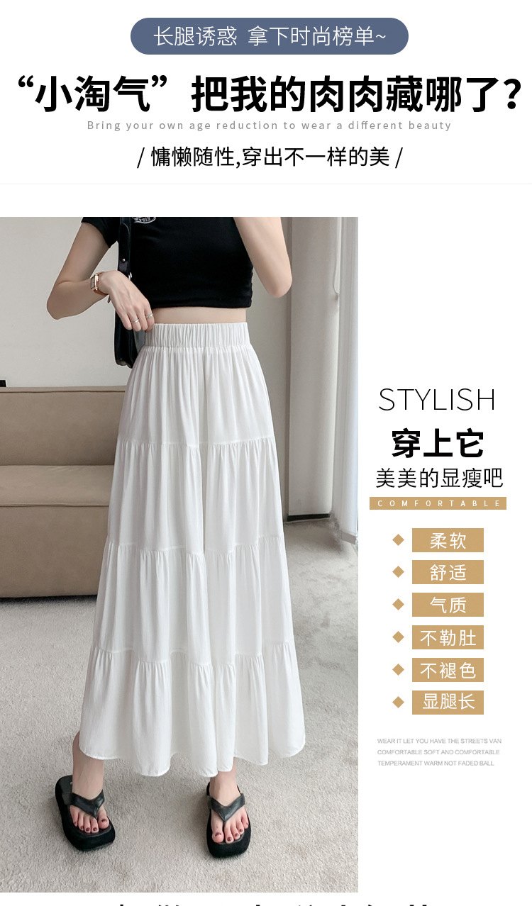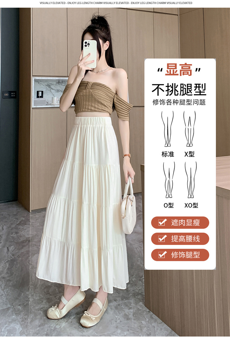 온화한 기질 나이를 줄이는 케이크 치마 여자 2024 년 봄과 여름 높은 허리 슬리밍 올 매치 대형 우산 스커트 A 라인 긴 치마스토어 가기