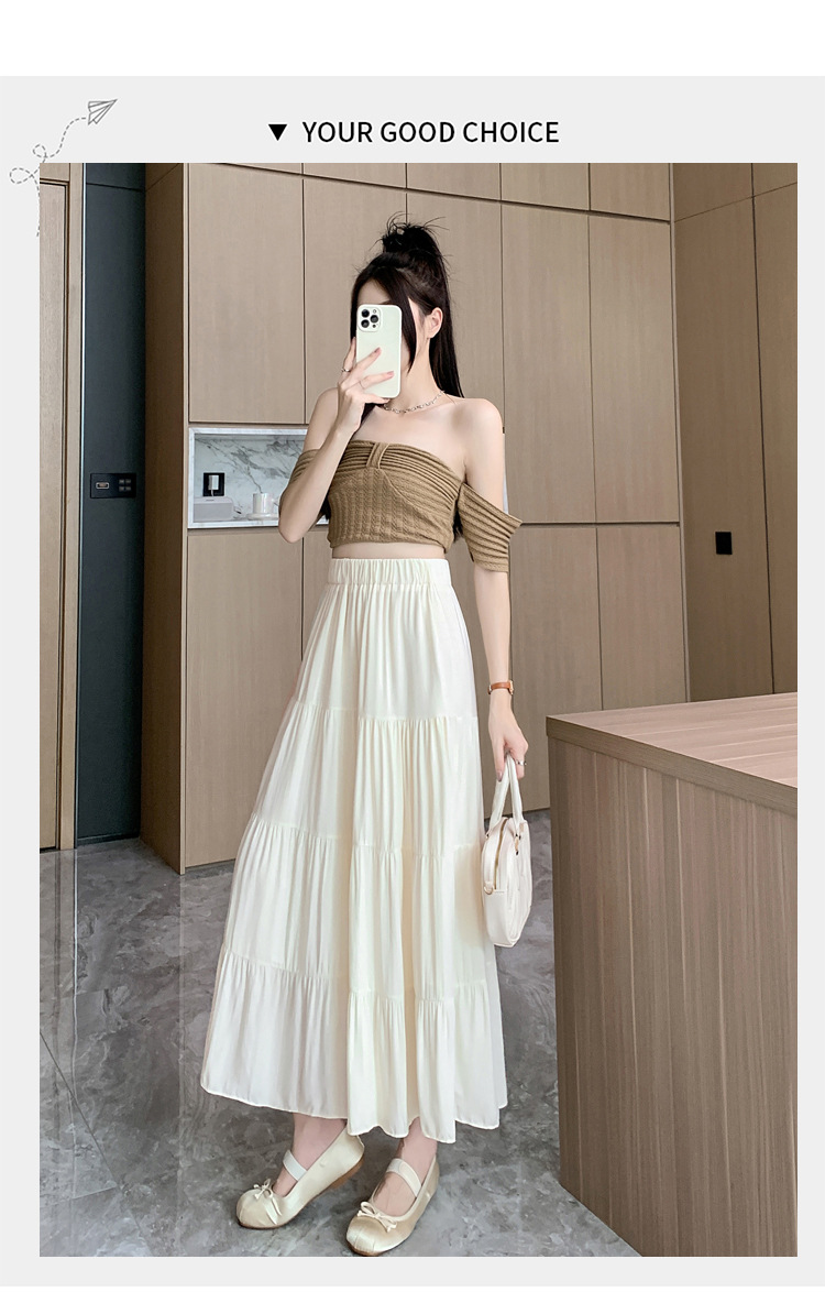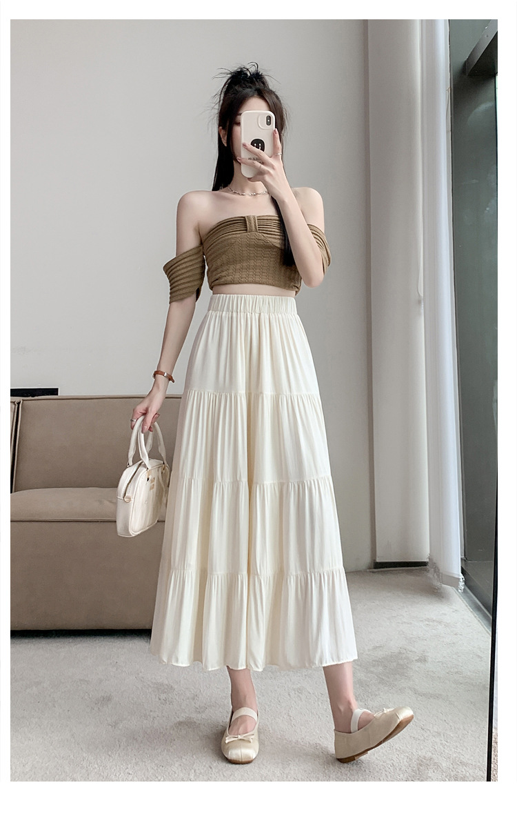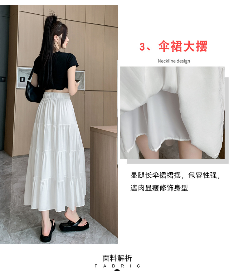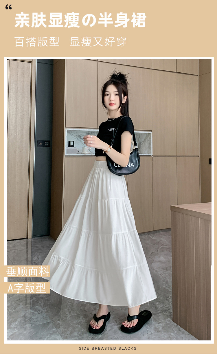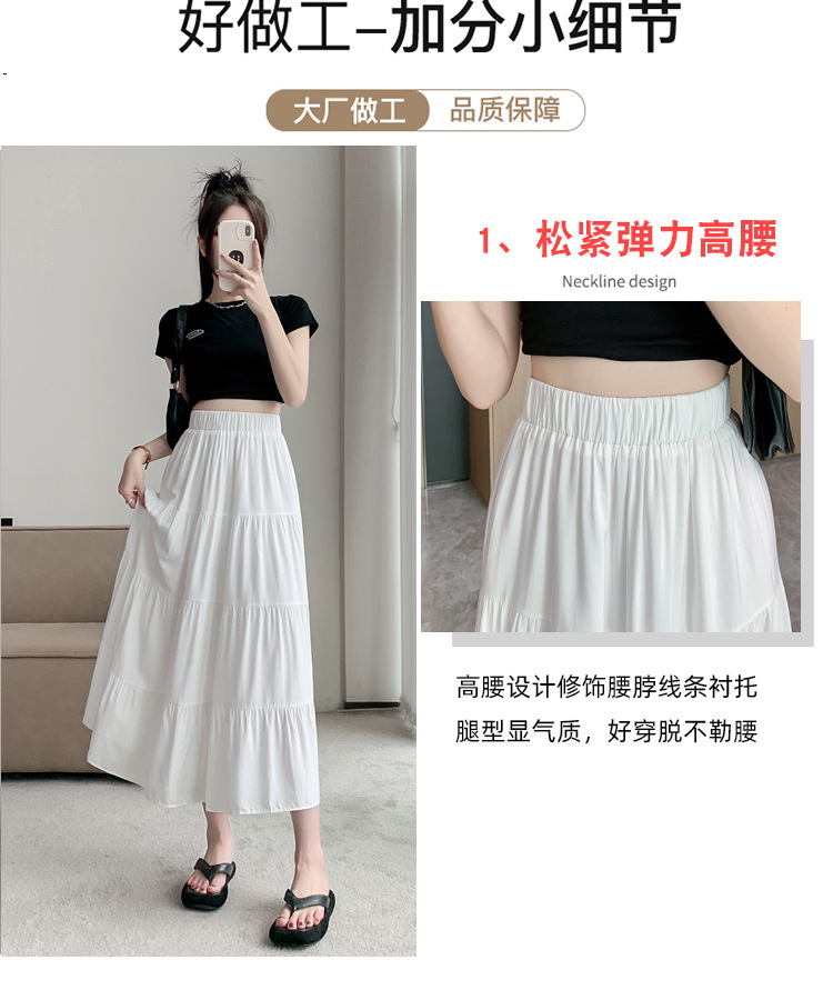 온화한 기질 나이를 줄이는 케이크 치마 여자 2024 년 봄과 여름 높은 허리 슬리밍 올 매치 대형 우산 스커트 A 라인 긴 치마스토어 가기