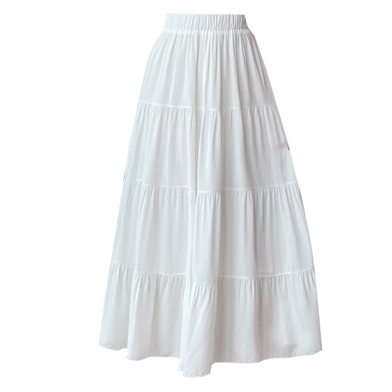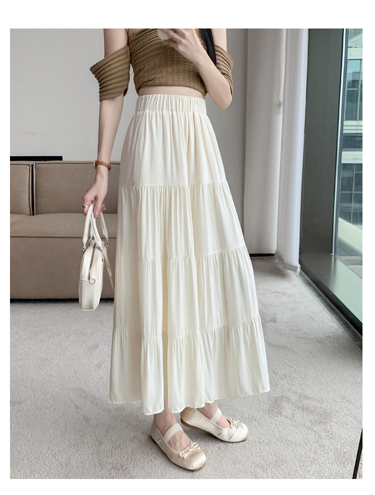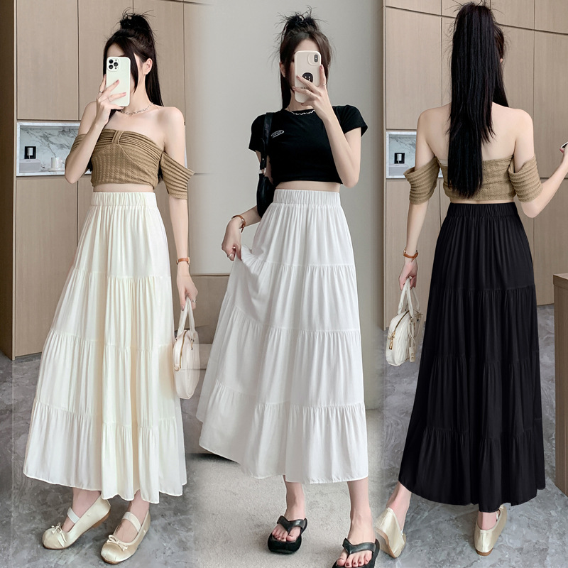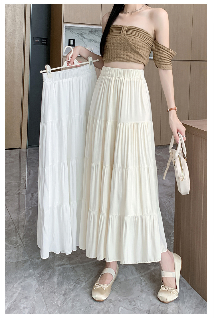 온화한 기질 나이를 줄이는 케이크 치마 여자 2024 년 봄과 여름 높은 허리 슬리밍 올 매치 대형 우산 스커트 A 라인 긴 치마