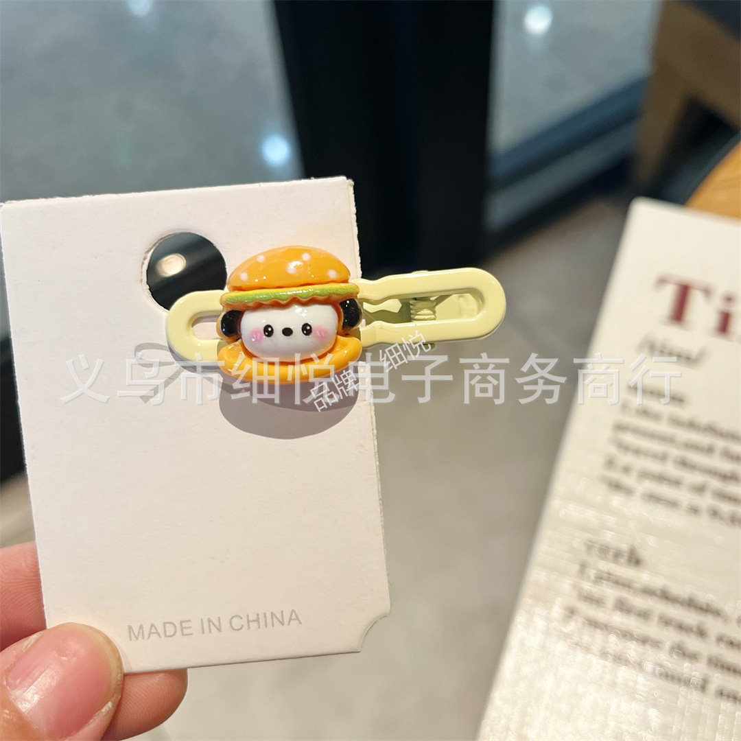귀여운 어린이 재미있는 스타일 앞머리 클립 한국 학생 만화 머리핀 어린이 비스킷 햄버거 쌍 클립 깨진 머리핀 헤어 액세서리스토어 가기