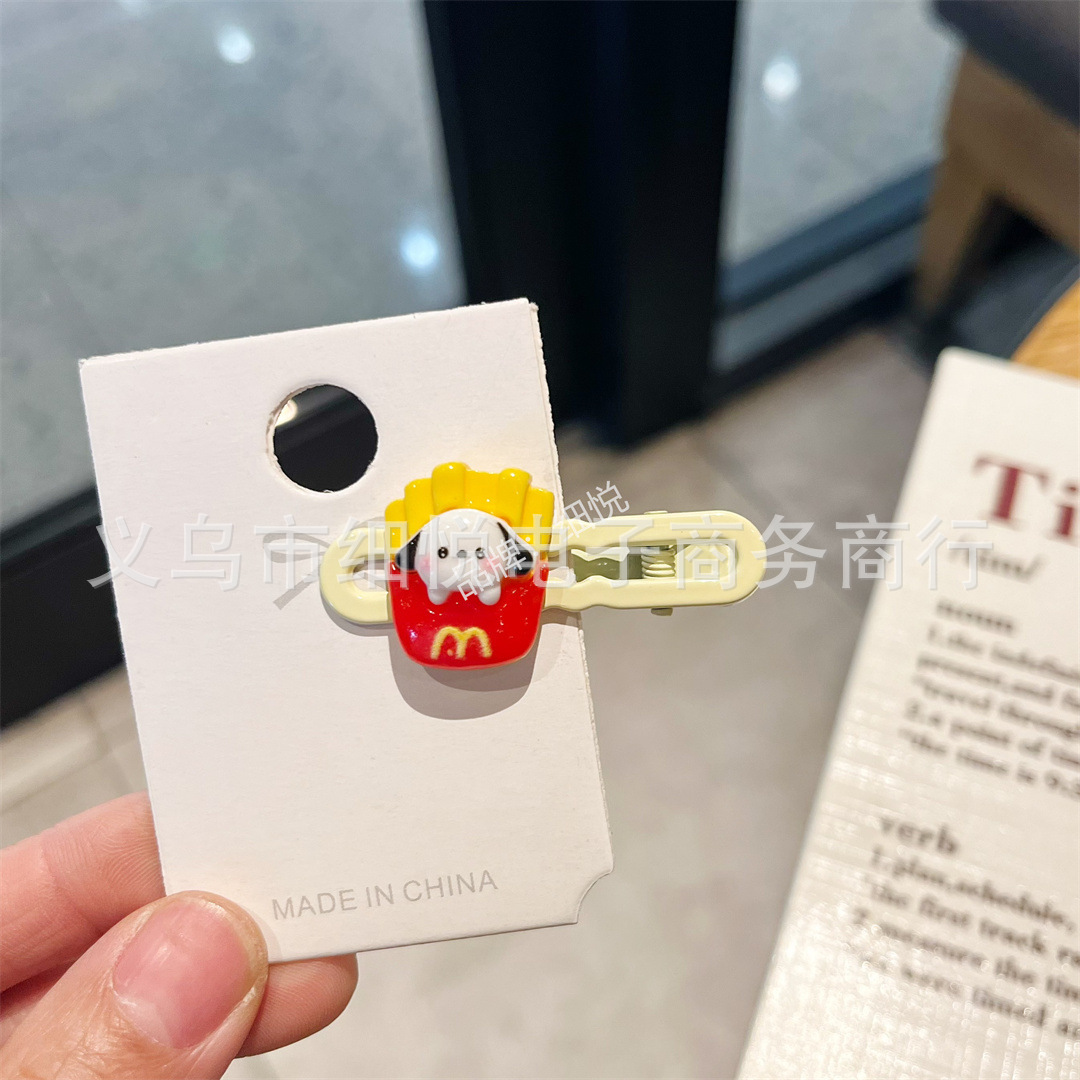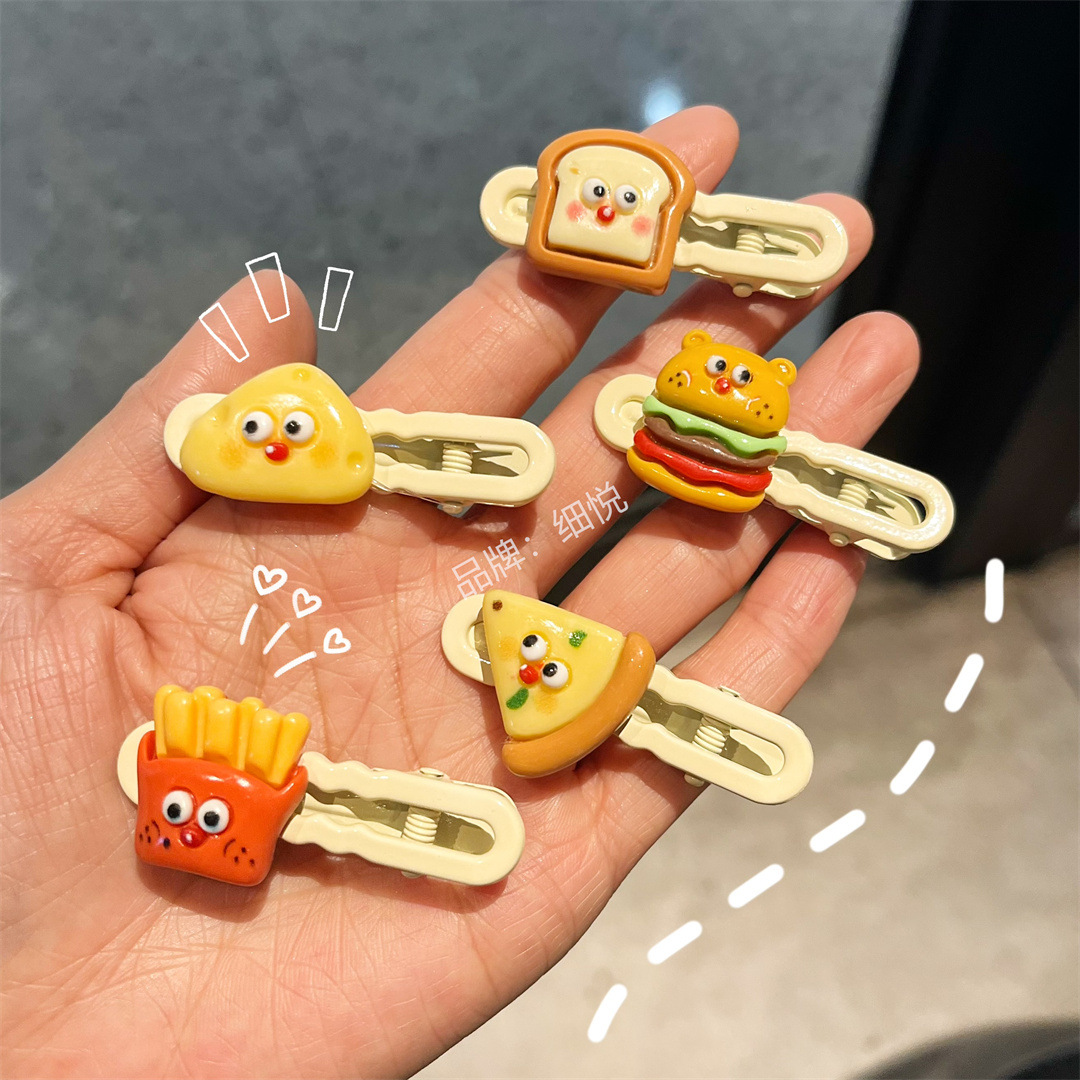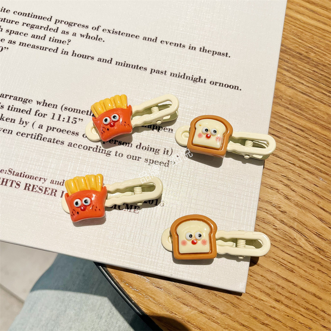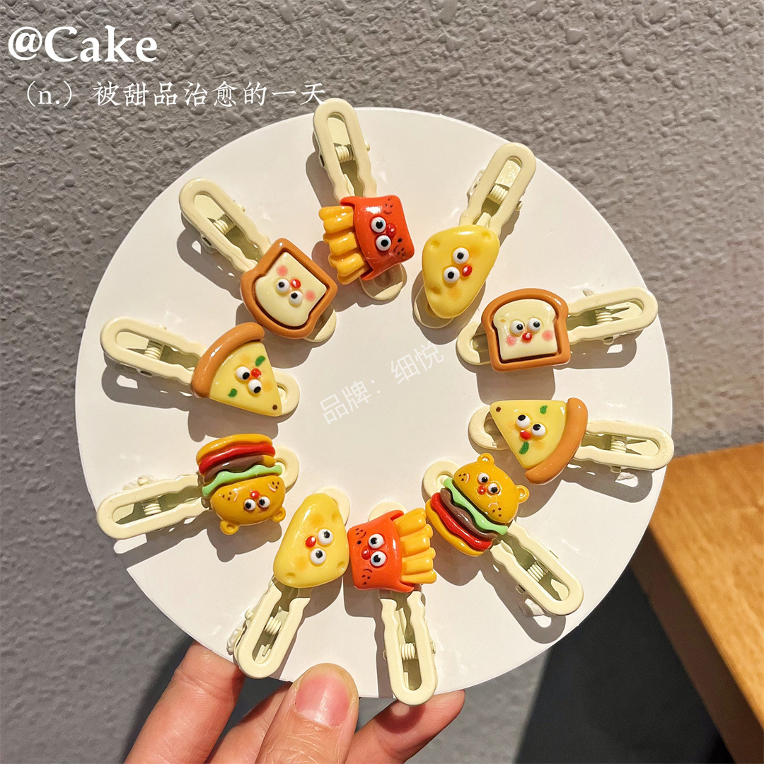 귀여운 어린이 재미있는 스타일 앞머리 클립 한국 학생 만화 머리핀 어린이 비스킷 햄버거 쌍 클립 깨진 머리핀 헤어 액세서리