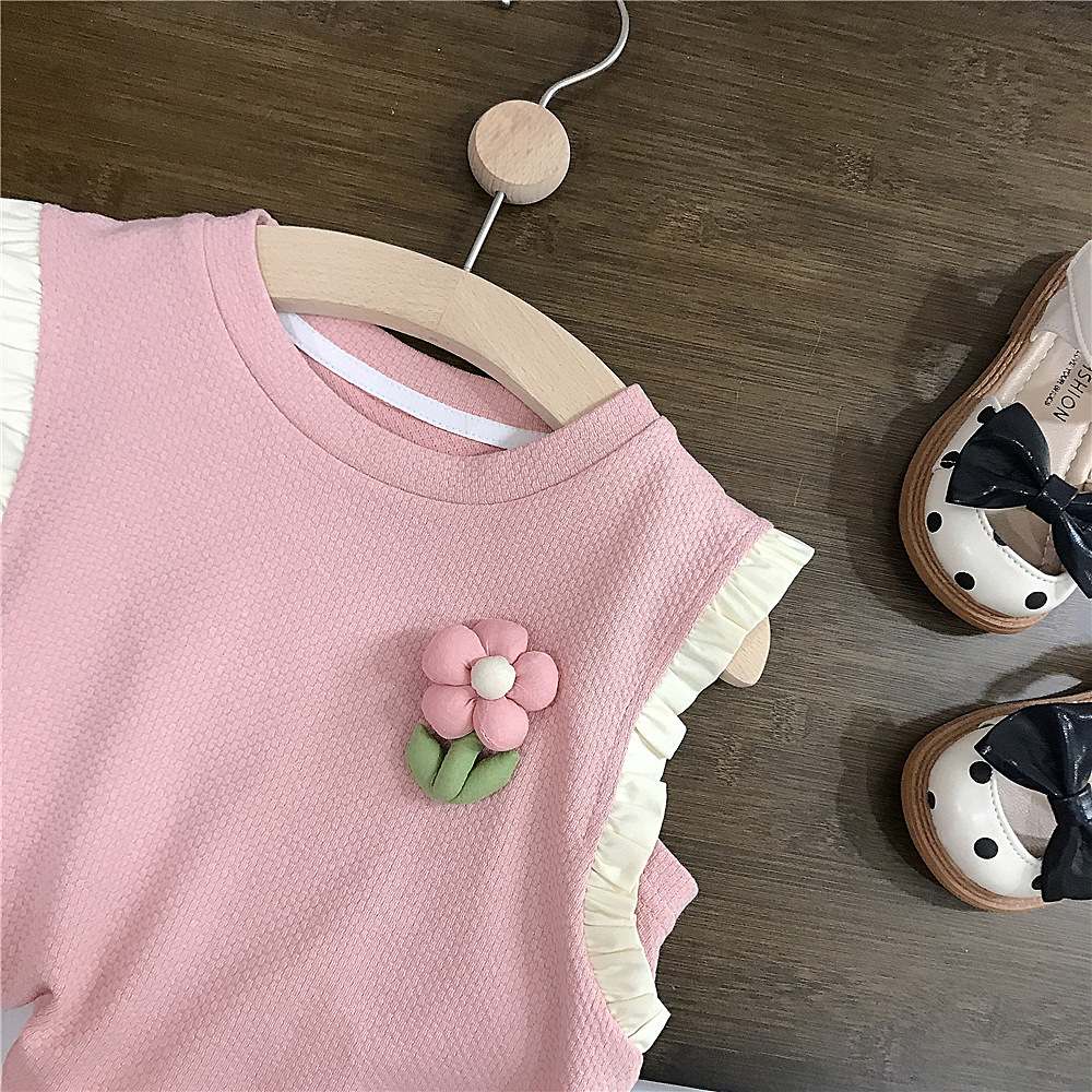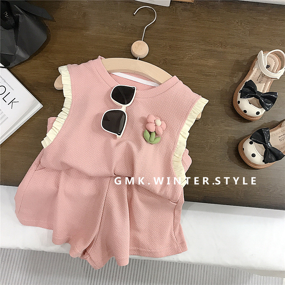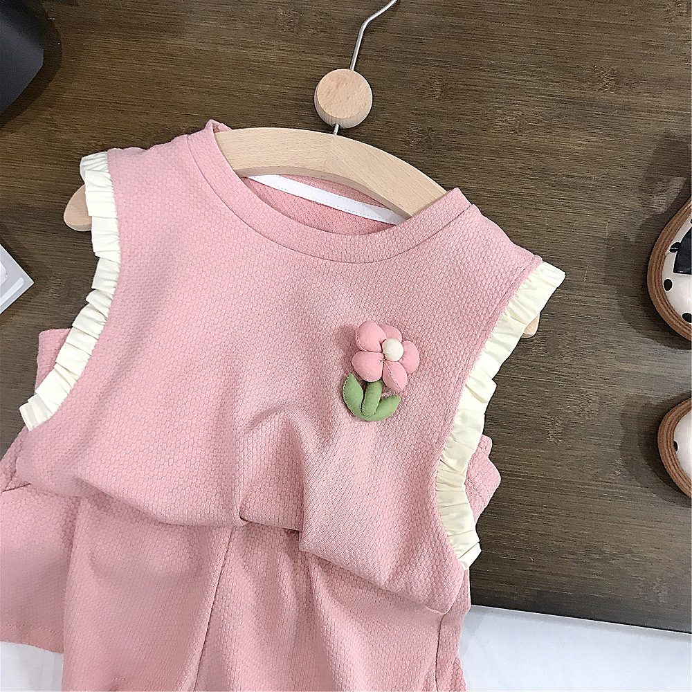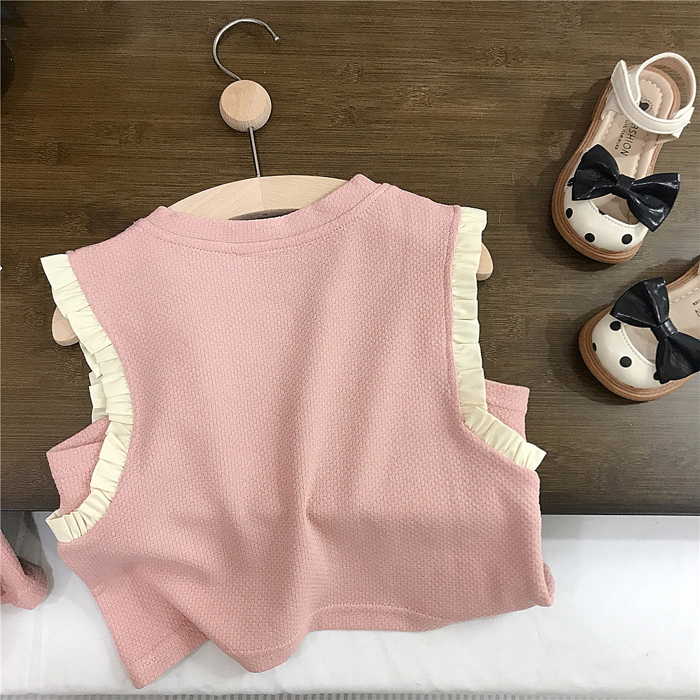 여성 어린이 패션 세트 서양식 여름 여름 새로운 얇은 민소매 반바지 외부 착용 아기 아이들의 유행 대외 무역스토어 가기