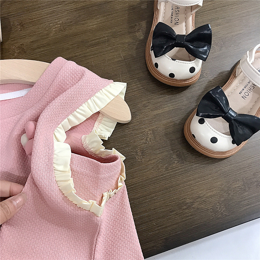 여성 어린이 패션 세트 서양식 여름 여름 새로운 얇은 민소매 반바지 외부 착용 아기 아이들의 유행 대외 무역