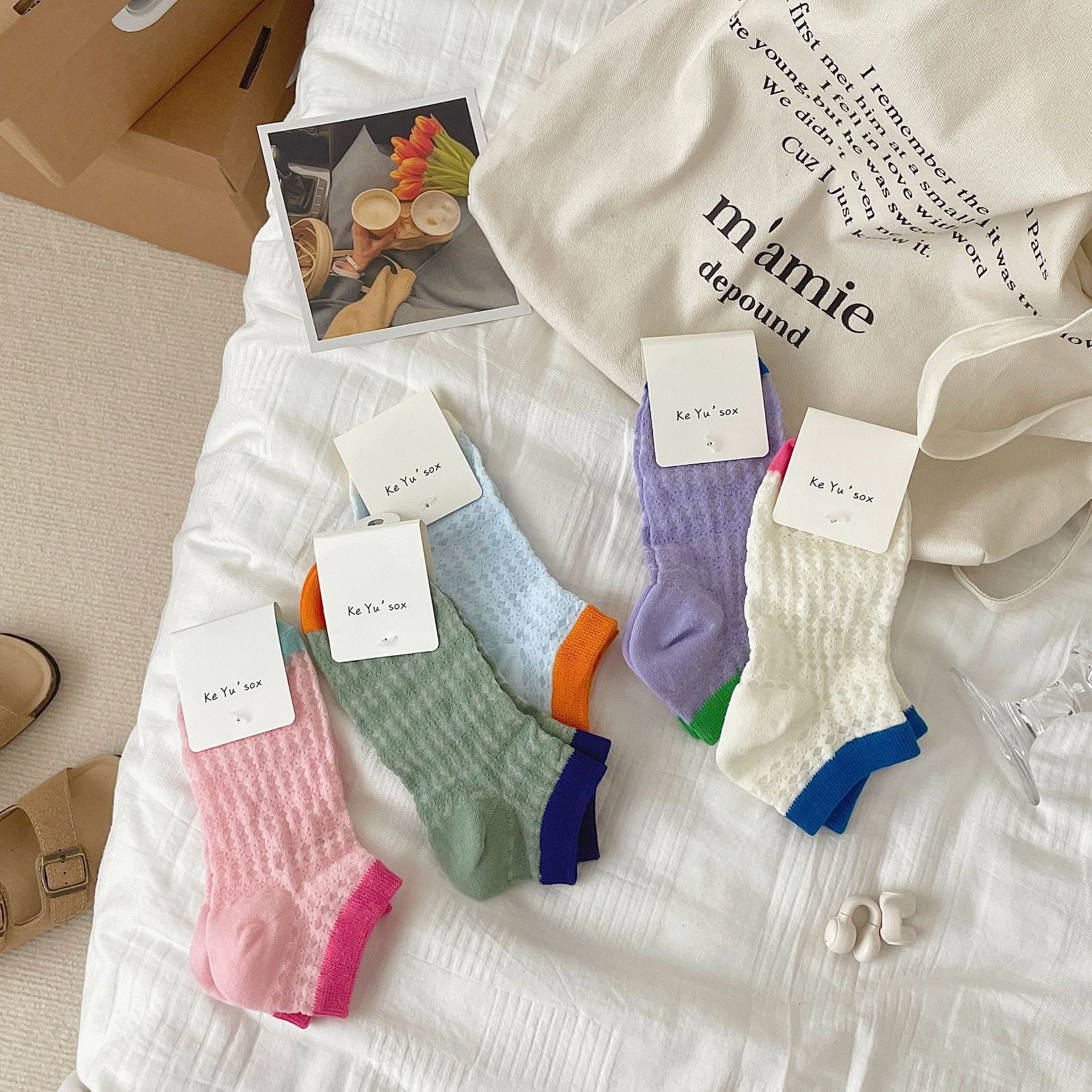 도파민 컬러 양말 여성용 짧은 양말 여름 얇은 메쉬 통기성 짧은 튜브 메쉬 레드 코튼 양말 여름 여성 보트 양말스토어 가기