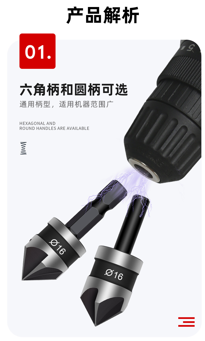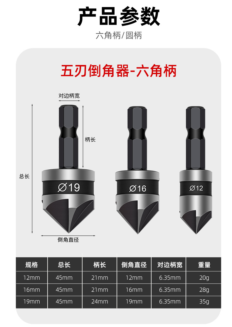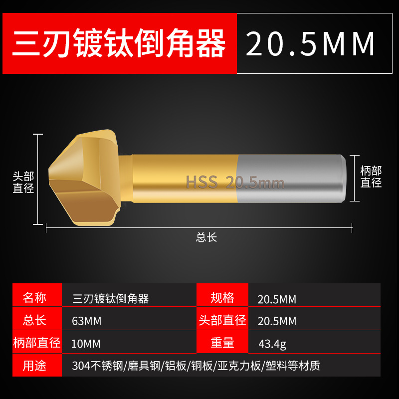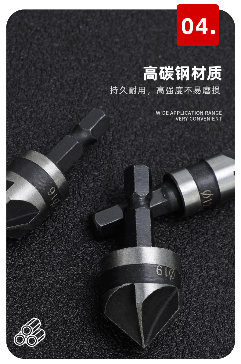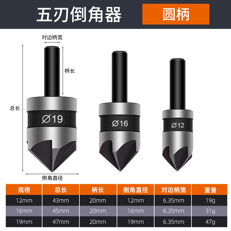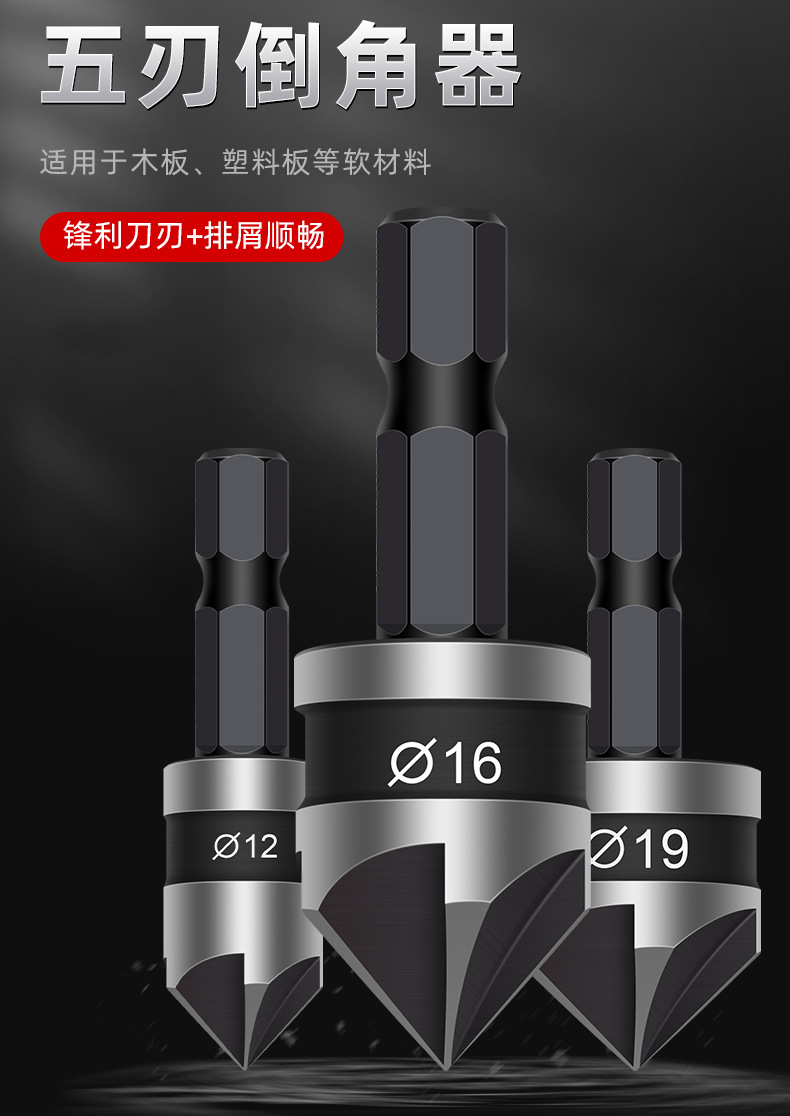 크로스 보더 블랙 90 도 목공 5 날 모따기 3 피스 육각형 핸들 티타늄 도금 리밍 5 날 모따기스토어 가기