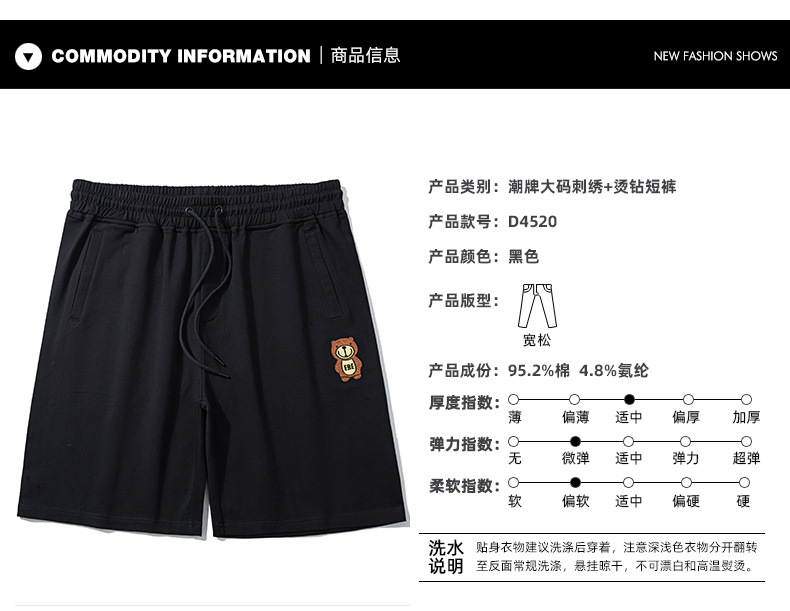 트렌디 한 브랜드 대형 자수 5 점 바지 남성용 느슨하고 뚱뚱한 스포츠 바지 스트레이트 바지 남성용 대형 운동복 D4520
