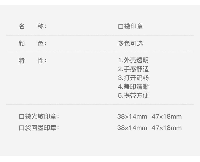 • 포켓 백 잉크 씰 38 × 14MM 투명 회색
